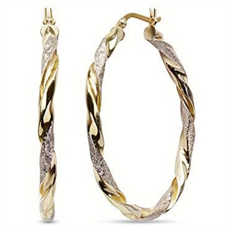 Add a touch of glamour with these sexy twist golden hoop earrings. Made of copper with 18K plating, these earrings are a perfect gift for females.