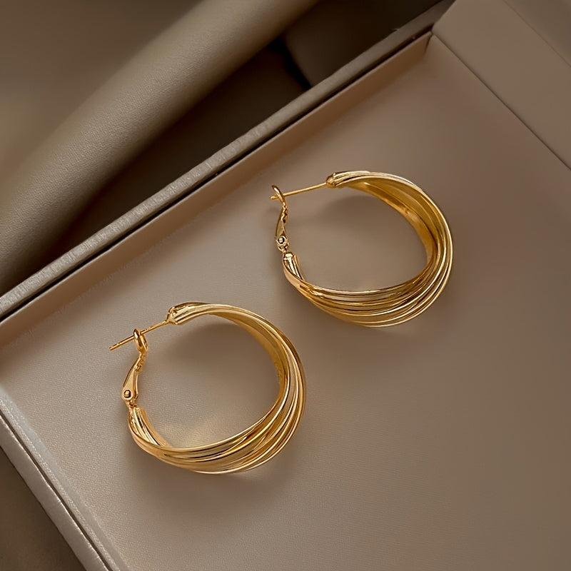 Add a touch of elegance to your look with these classic twisted hoop earrings. Made of durable zinc alloy, they are perfect for daily wear, parties, travel, and vacation. Whether for your girlfriend or mother, these earrings make an ideal gift.