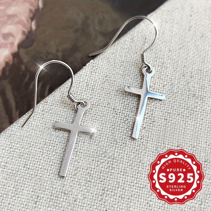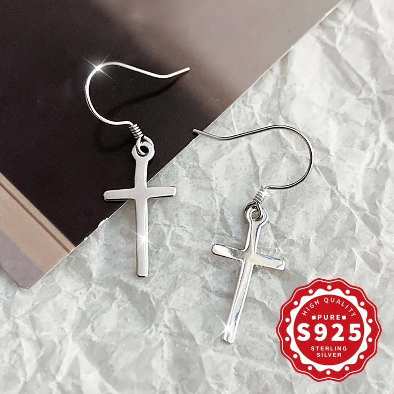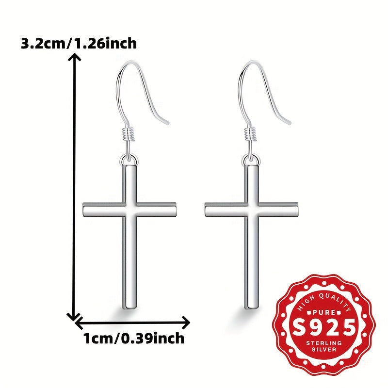 Complete your look with this matching set of men's and women's cross hook earrings and cross pendant. Crafted from S925 sterling silver, these unisex pieces are suitable for daily wear and various occasions.