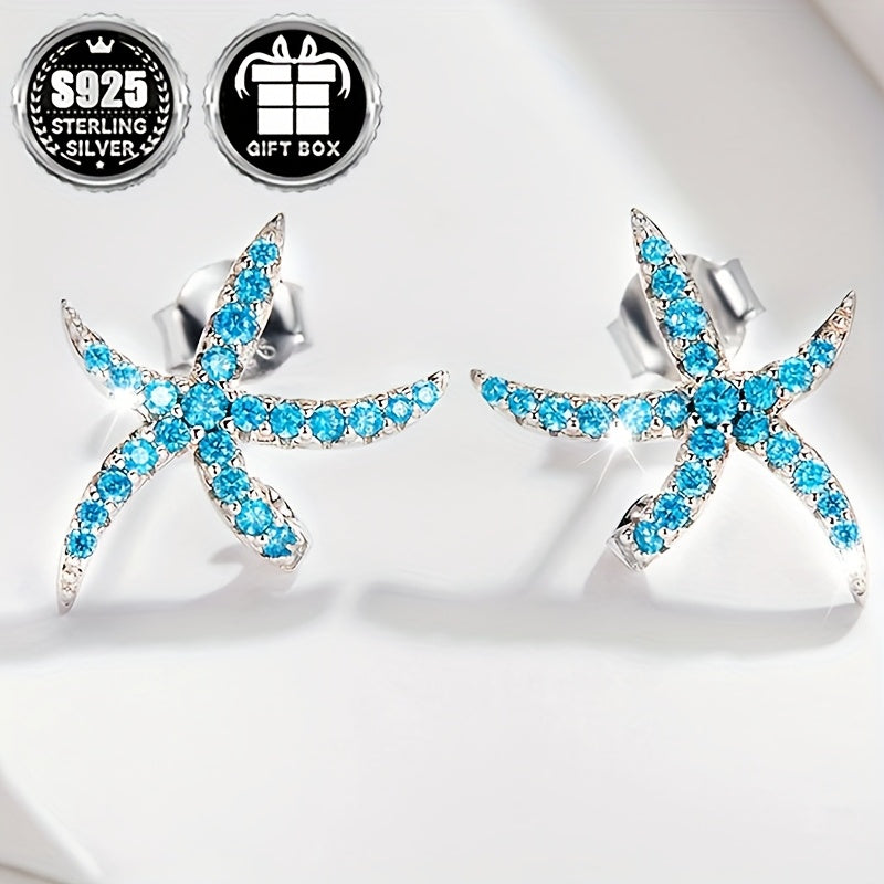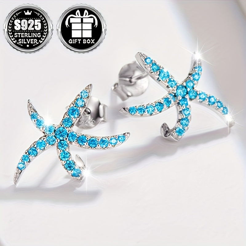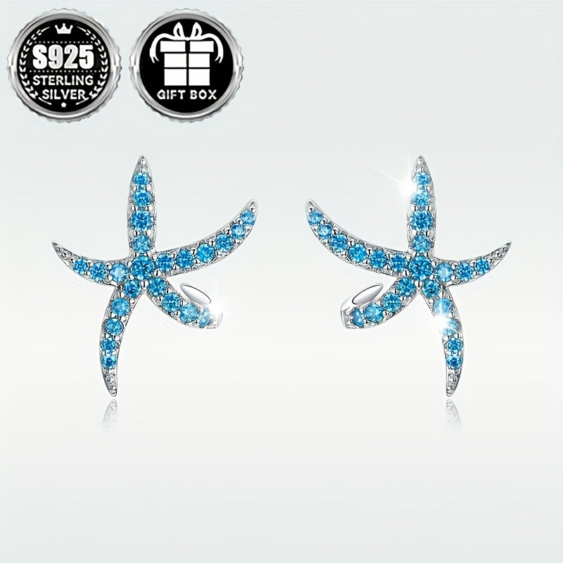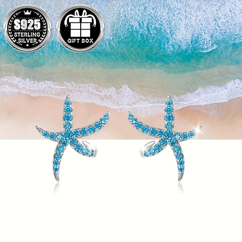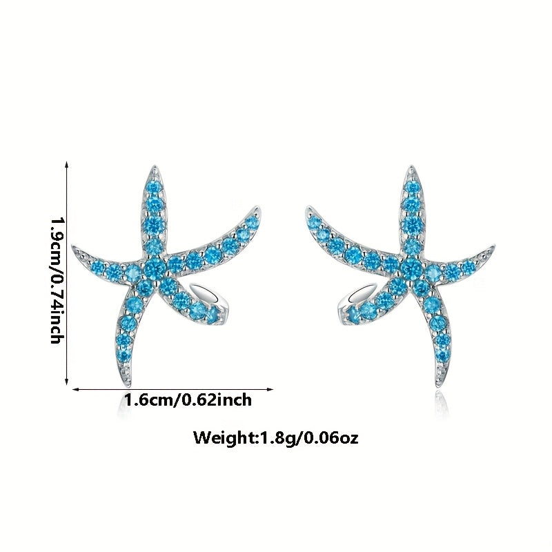 These elegant Vana starfish stud earrings are made of S925 sterling silver with synthetic cubic zirconia. They feature a classic nautical design that is ideal for daily wear, parties, and banquets.