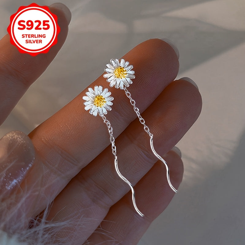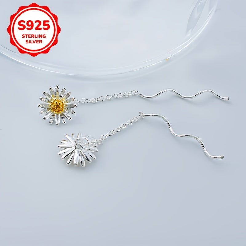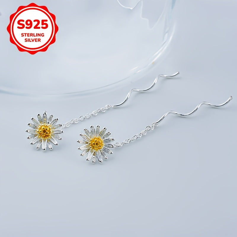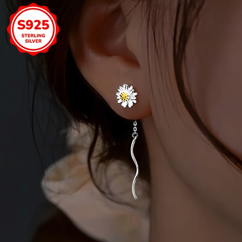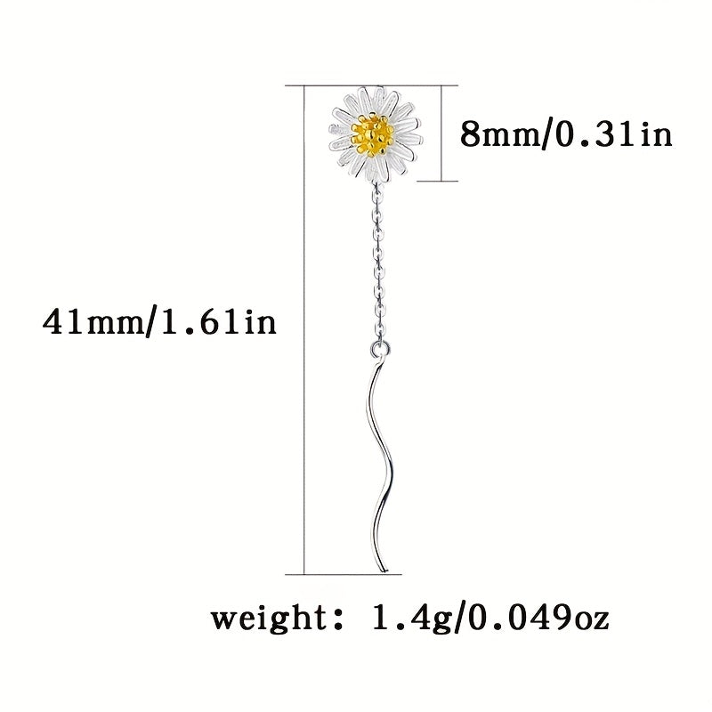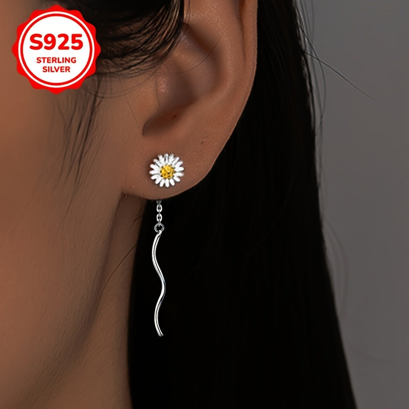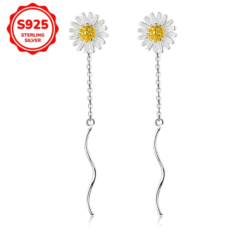 Elevate your style with these chic daisy line earrings. Made with 925 silvery material, they are lightweight and perfect for daily wear, vacations, and as a thoughtful Mother's Day gift.