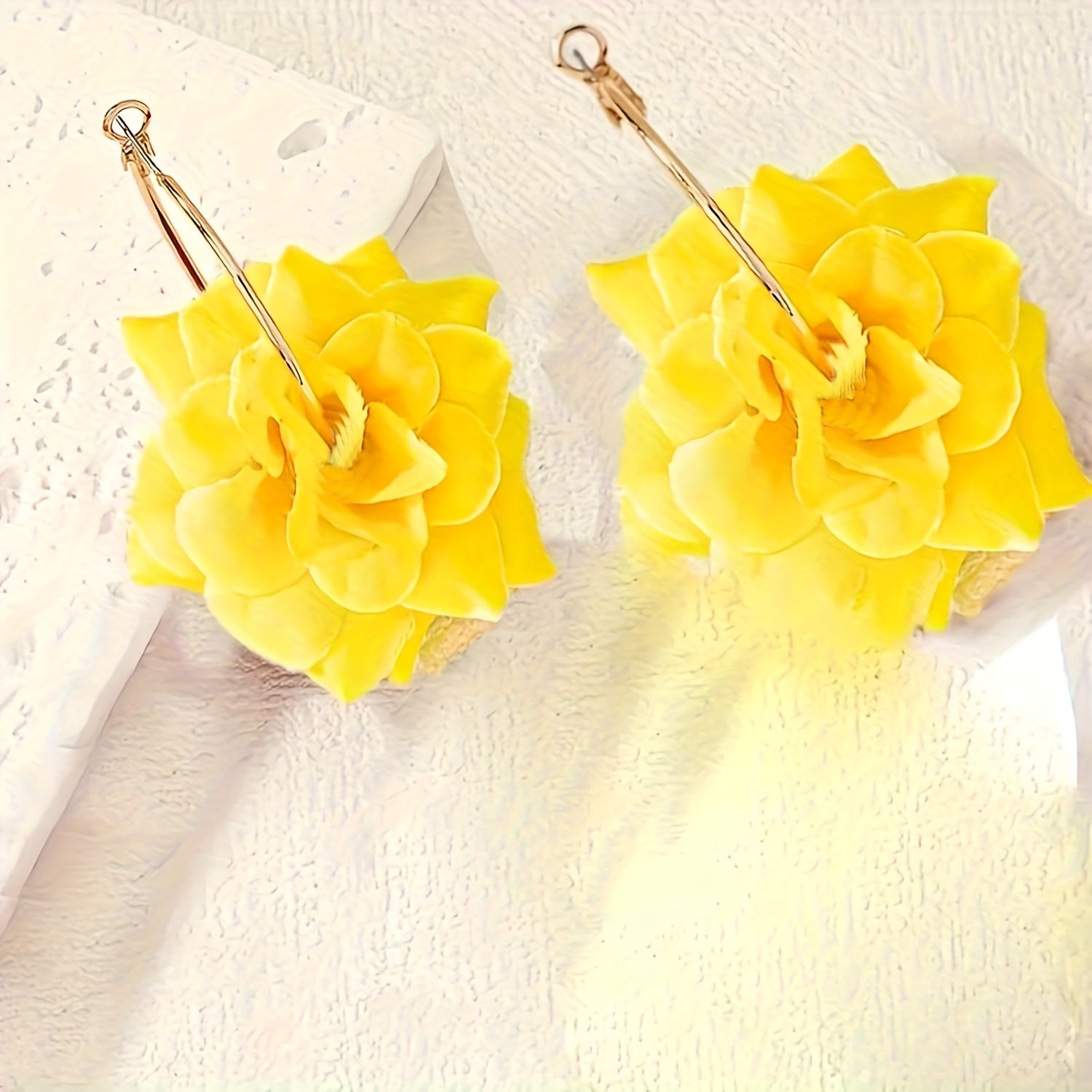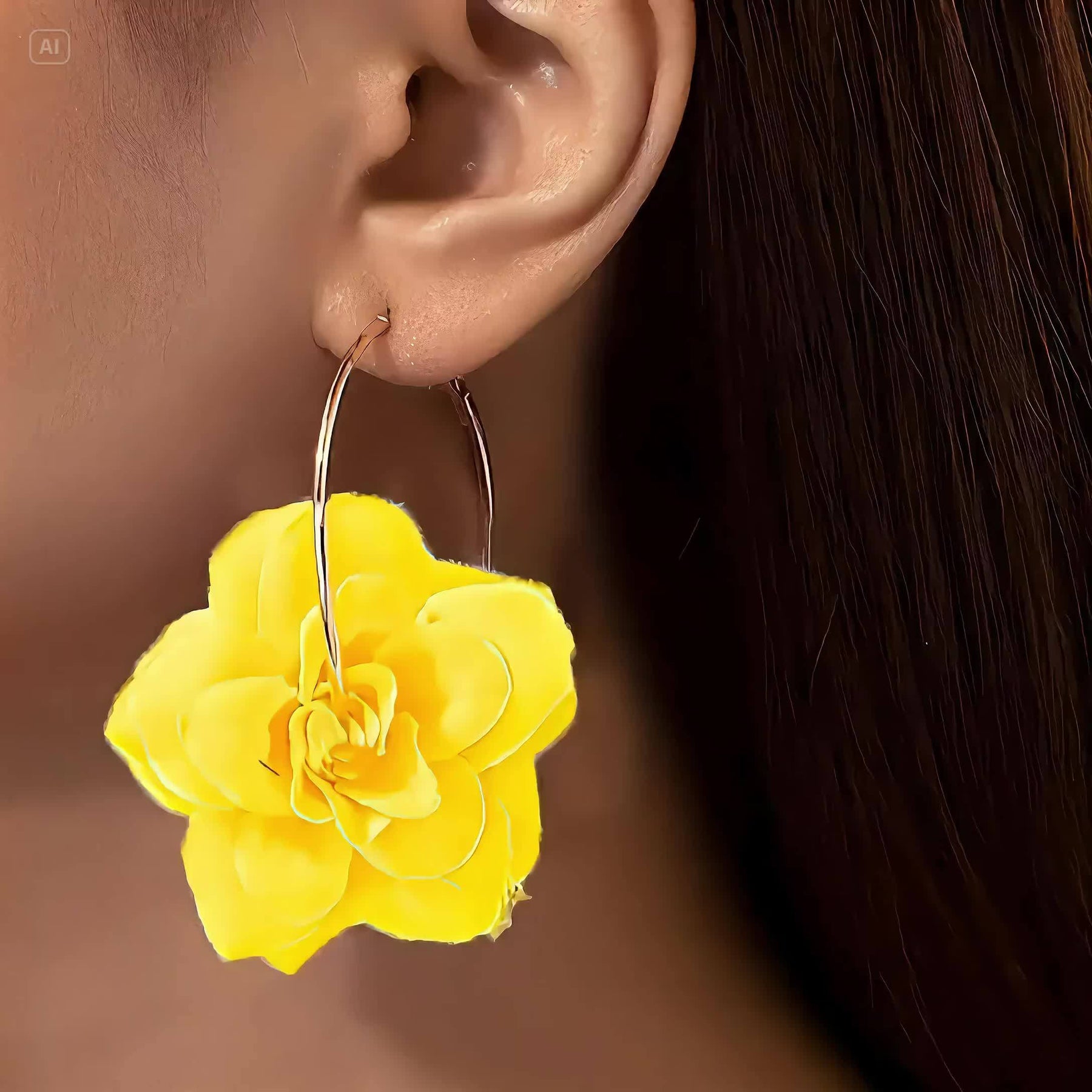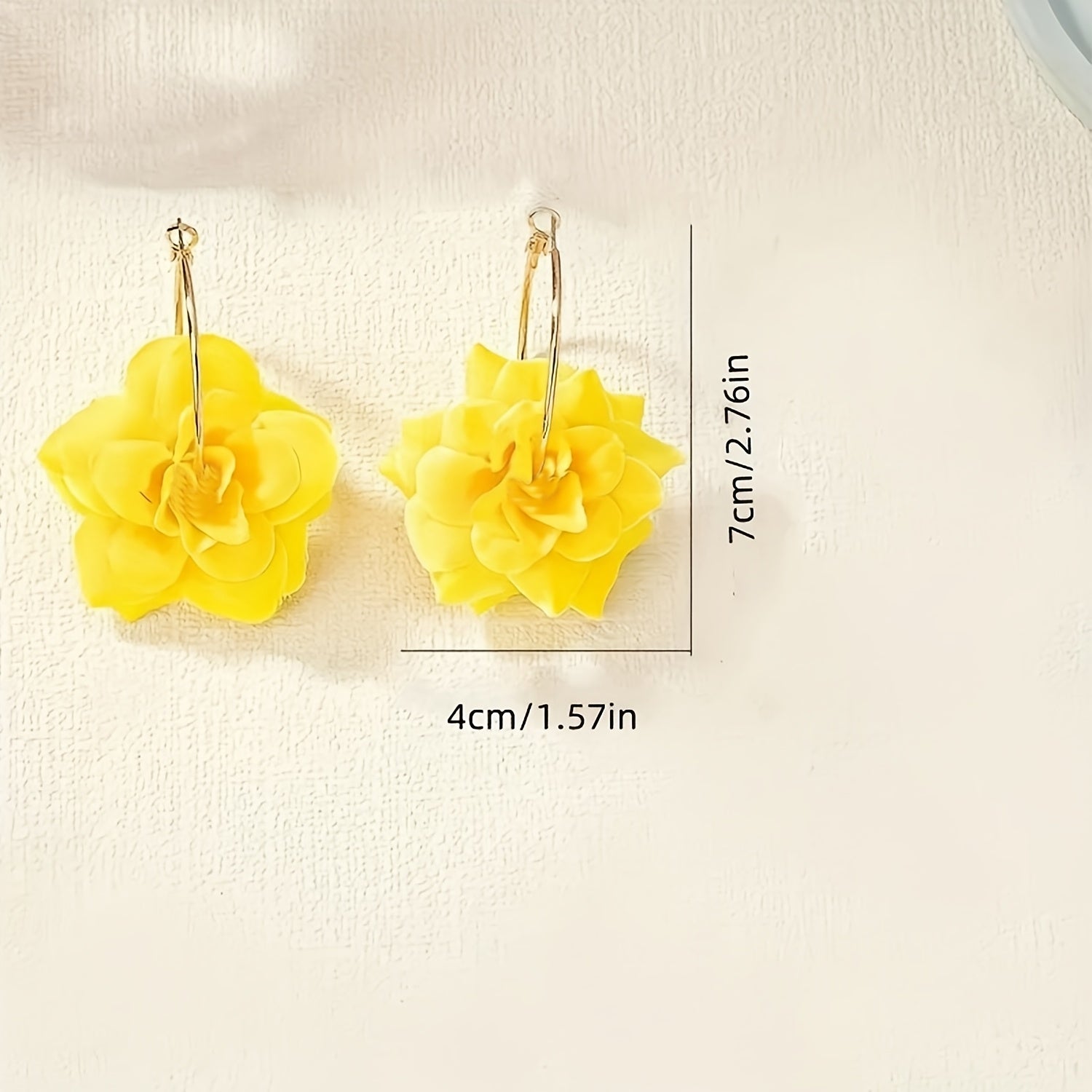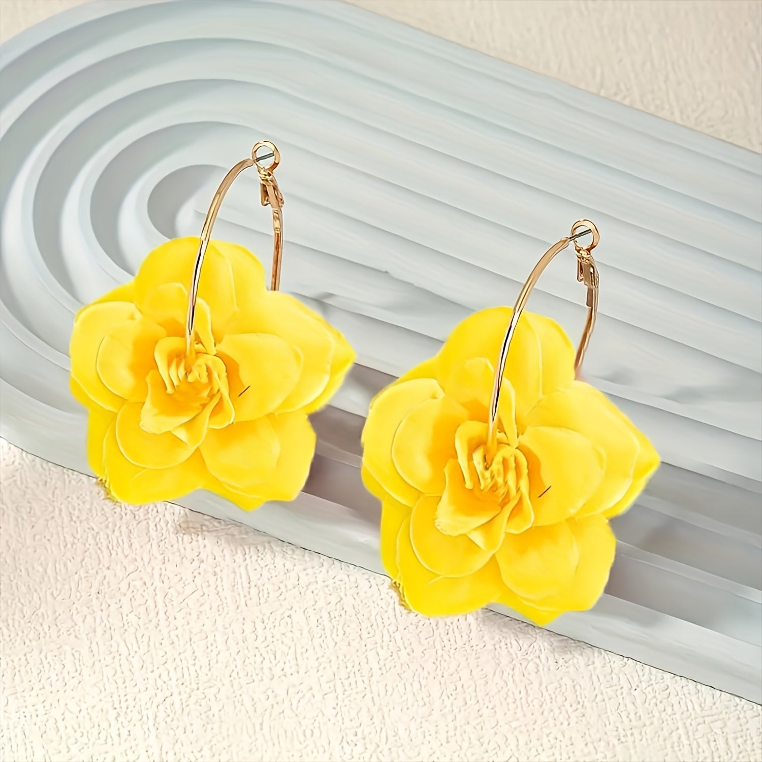 Add a touch of whimsy to your everyday look with these yellow floral hoop earrings featuring stainless steel posts. Perfect for casual wear or adding a fun twist to your outfit.