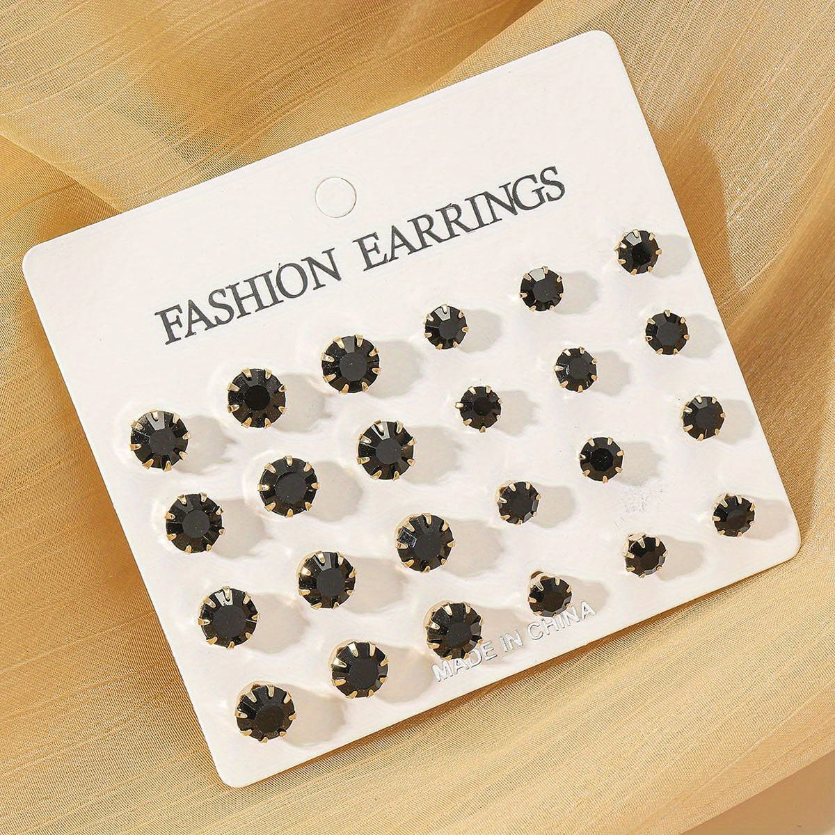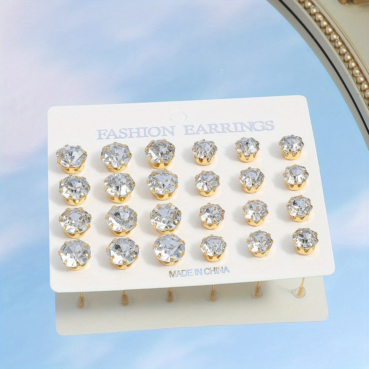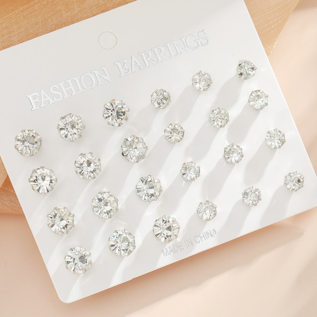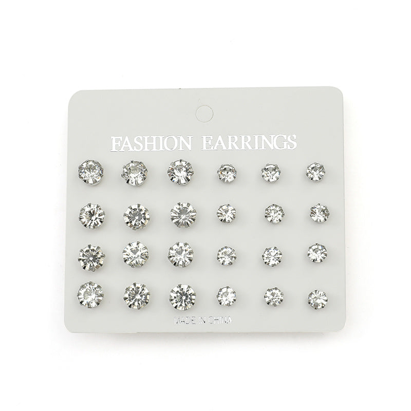 • Set of 12 stud earrings with zircon decoration