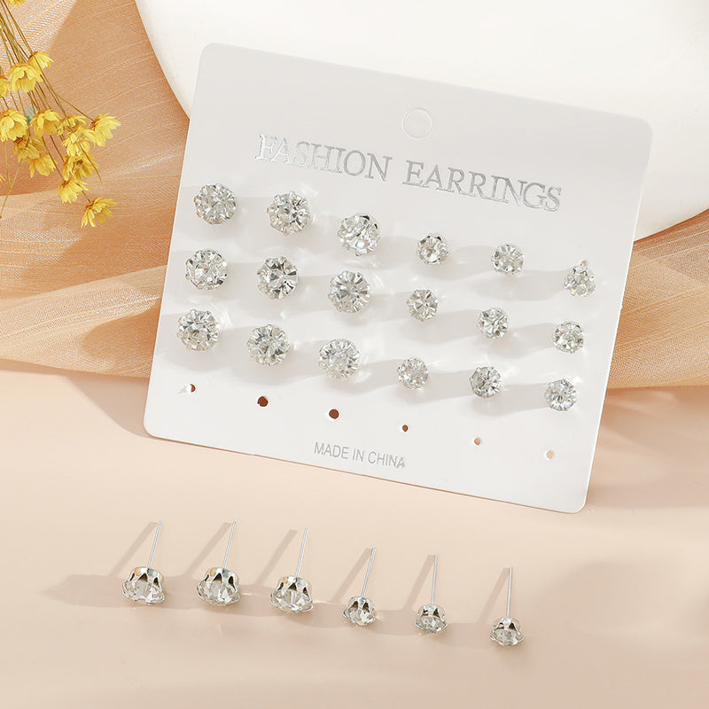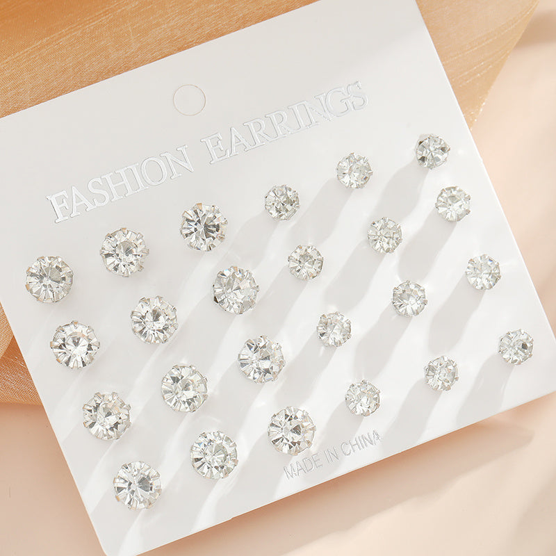 Zircon Decor Stud Earrings Set of 12