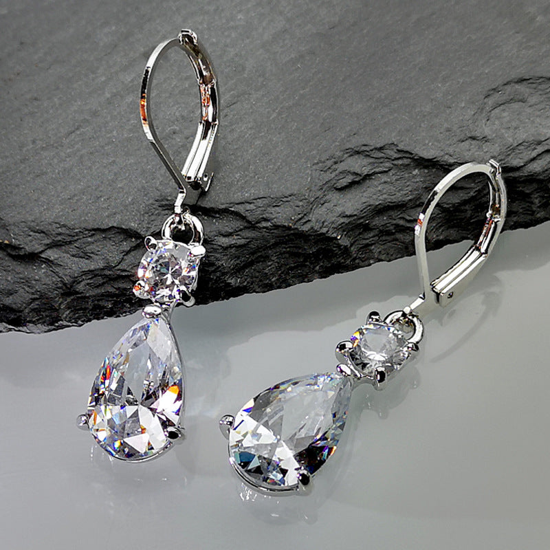 Elegant drop-shaped zircon earrings with a shimmering gemstone design, perfect for adding a touch of sophistication to any outfit.