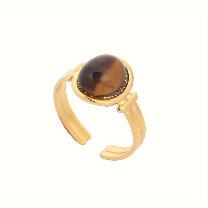 Add a touch of elegance to your look with this adjustable open cuff ring. The 18K gold plating and resin inlay create a stunning contrast that will make a statement.