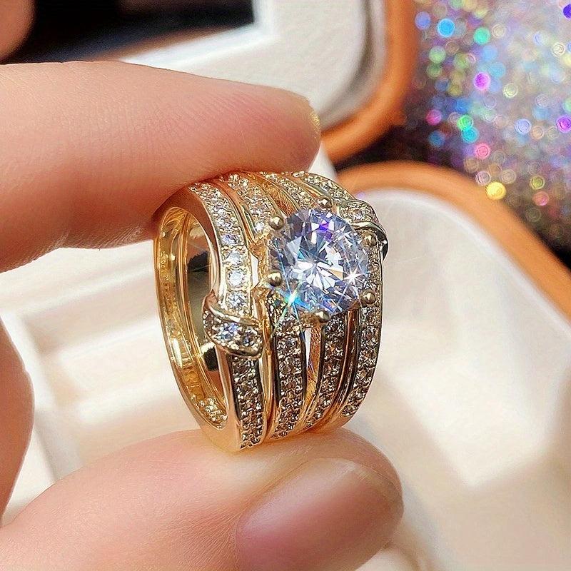 Elegant ring set with round zircon stones, perfect for engagements and weddings. This set includes 3 beautiful rings.