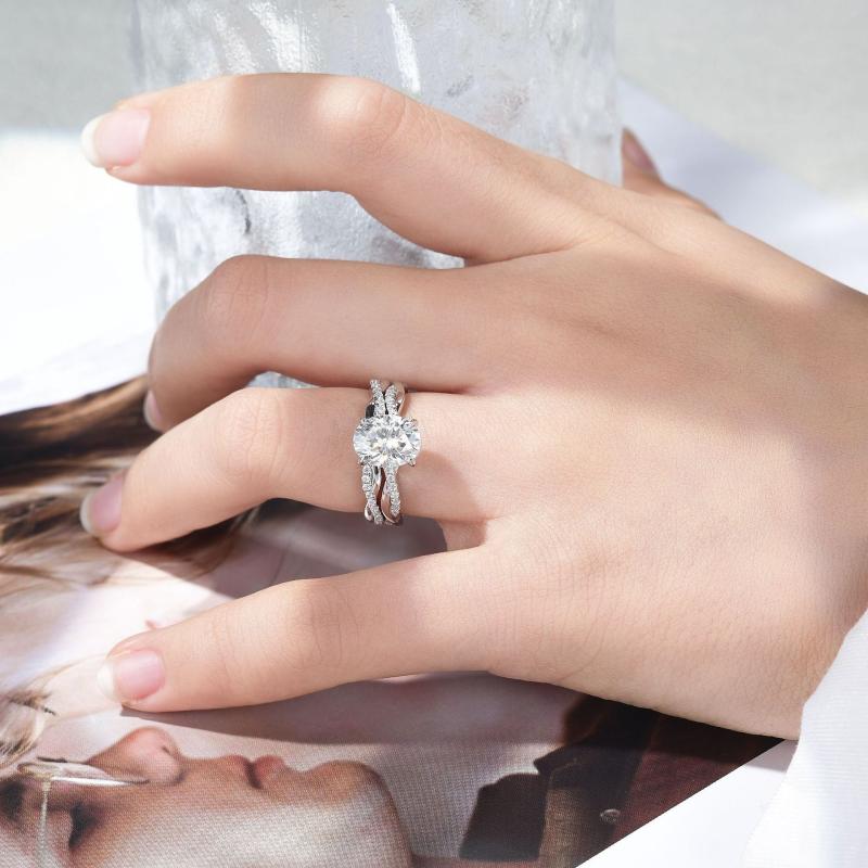 Stunning 2 carat oval moissanite ring set in a vine-inspired design. This engagement ring features a 9mm moissanite stone. Size 7.