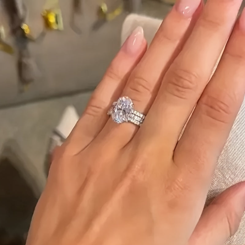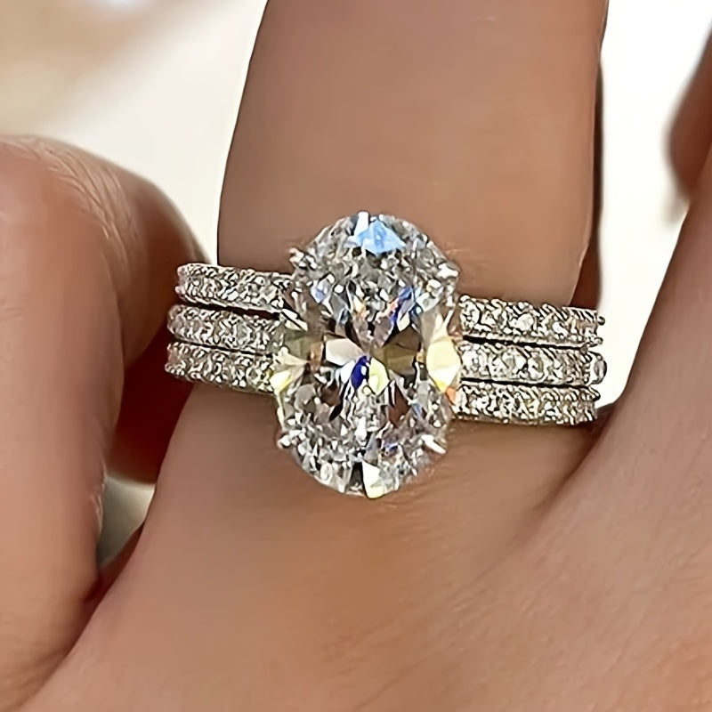 This set of three rings features four-prong oval synthetic zirconia stones, perfect for bridal, wedding, banquet, or party wear. Ideal as a jewelry gift.