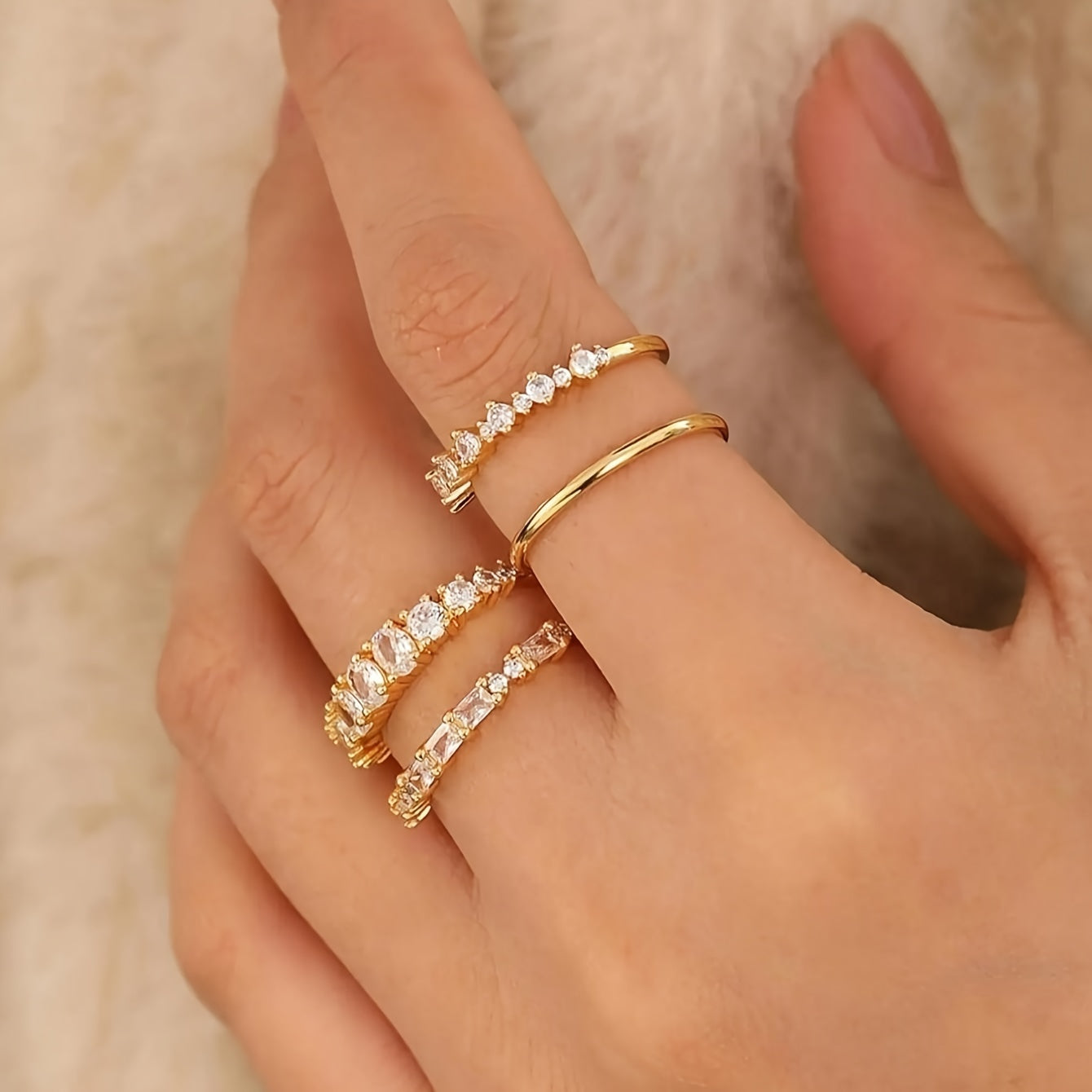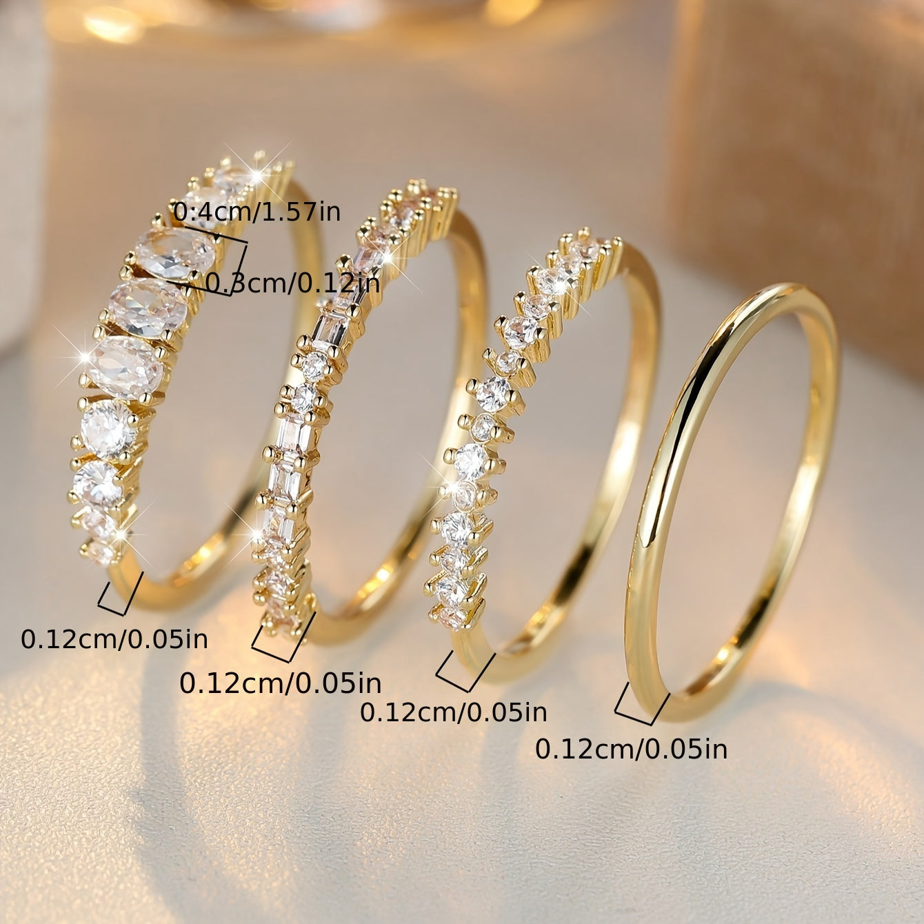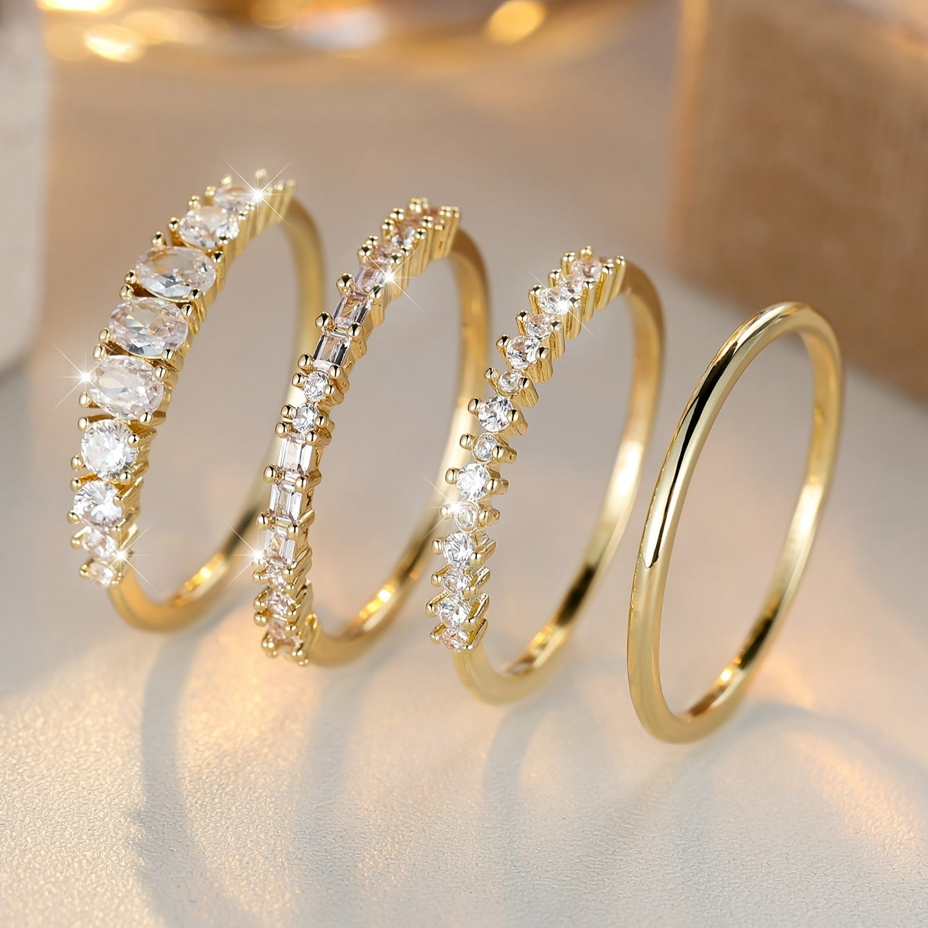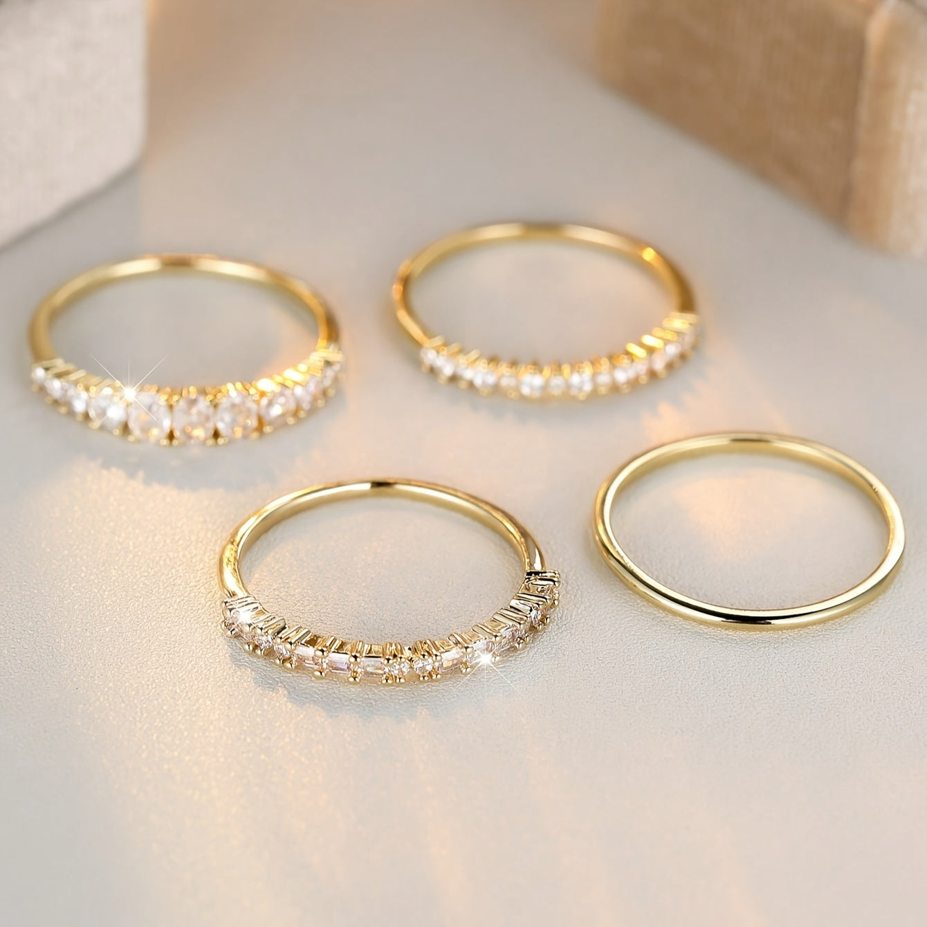 4pcs Stackable Rings Set Minimalist Everyday Statement Wedding Bands for Women