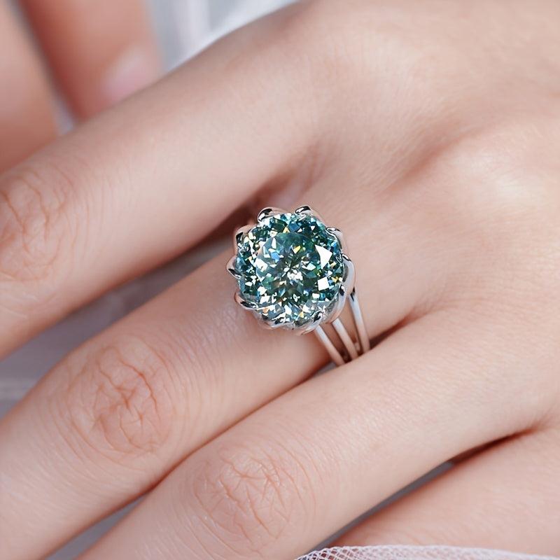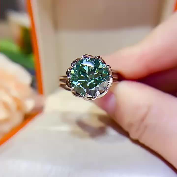 This stunning 5 carat green moissanite ring is crafted in 925 sterling silver, making it perfect for both men and women. Ideal for banquets, parties, occasions, Valentine's Day, engagements, and proposals.