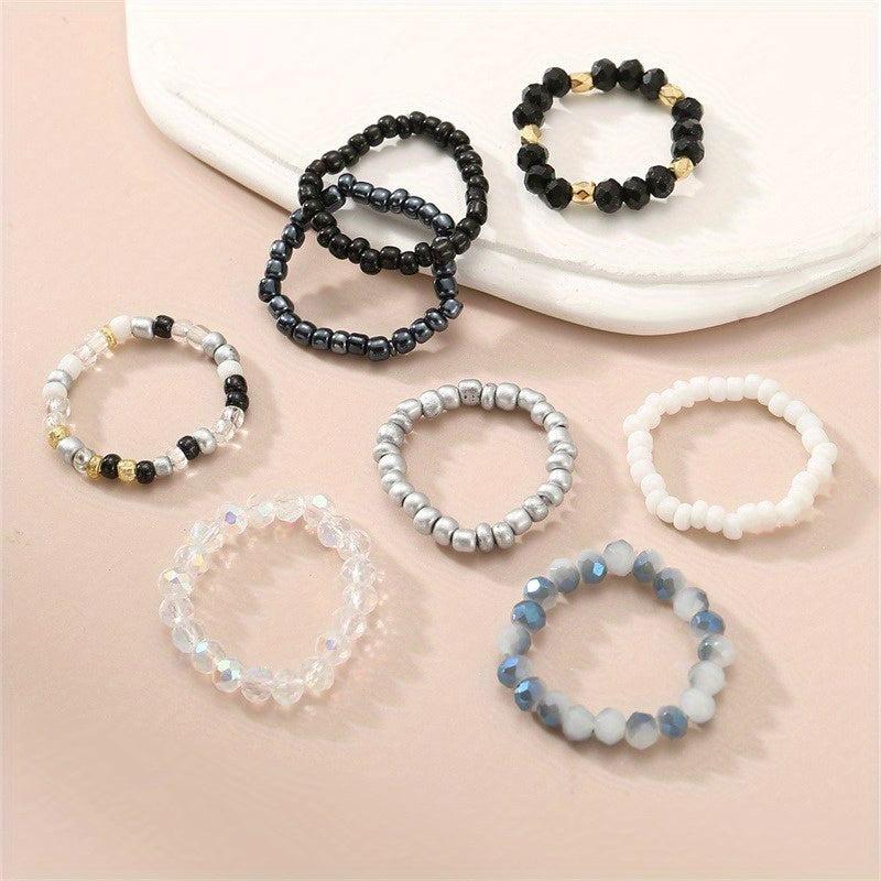 These Boho Beaded Elastic Rings are perfect for all season versatile jewelry. They are ideal for daily wear and music occasions. A great casual jewelry gift!