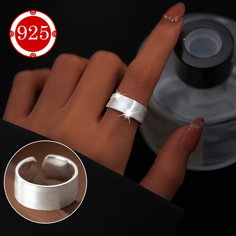 Dieser 925 Silberring verfügt über ein breites Gesicht mit gebürstetem Finish, wodurch er hypoallergen und für empfindliche Haut geeignet ist. Es ist ein offener verstellbarer Ring, der perfekt für den Zeigefinger ist. Ideal für Paare oder Freunde, die zusammen tragen können.