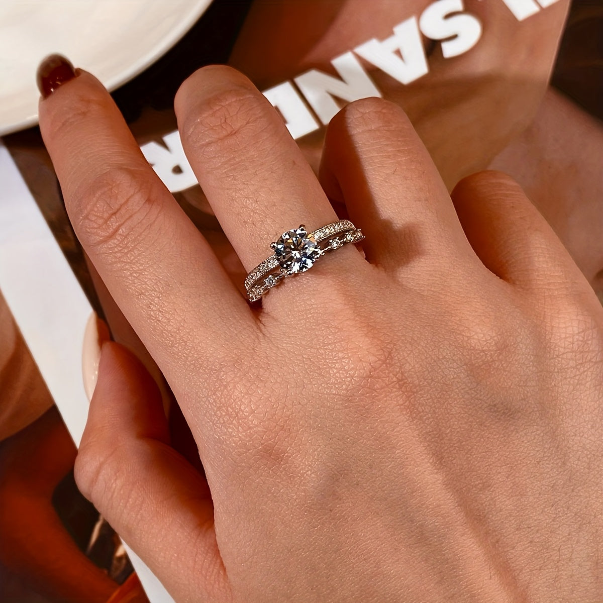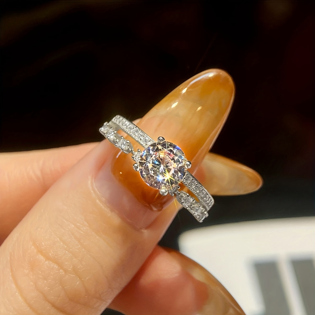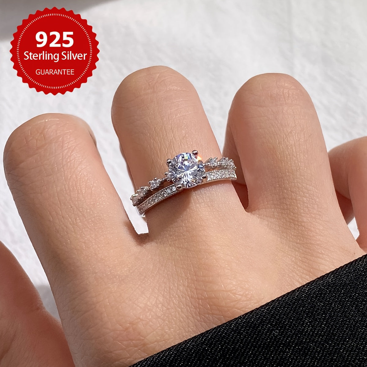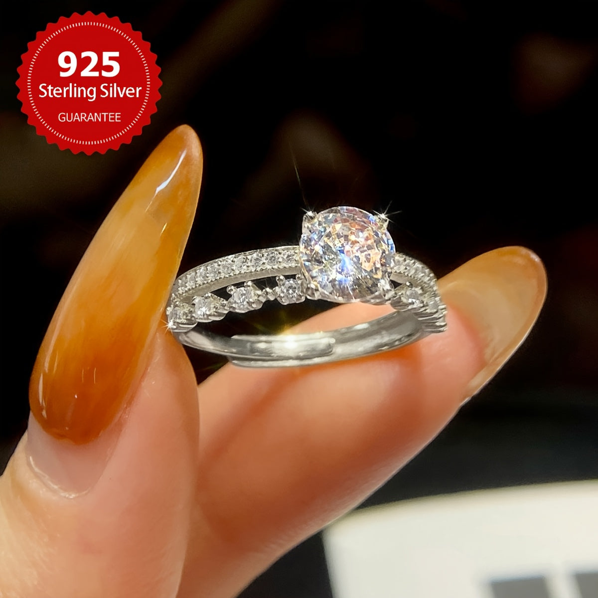 Dieser zweischicht offene Ring besteht aus 925 Sterlingsilber und verfügt über eine synthetische Zirkonia. Es ist perfekt für tägliche Verschleiß und Geschenkverbindung, ideal für den Valentinstag.