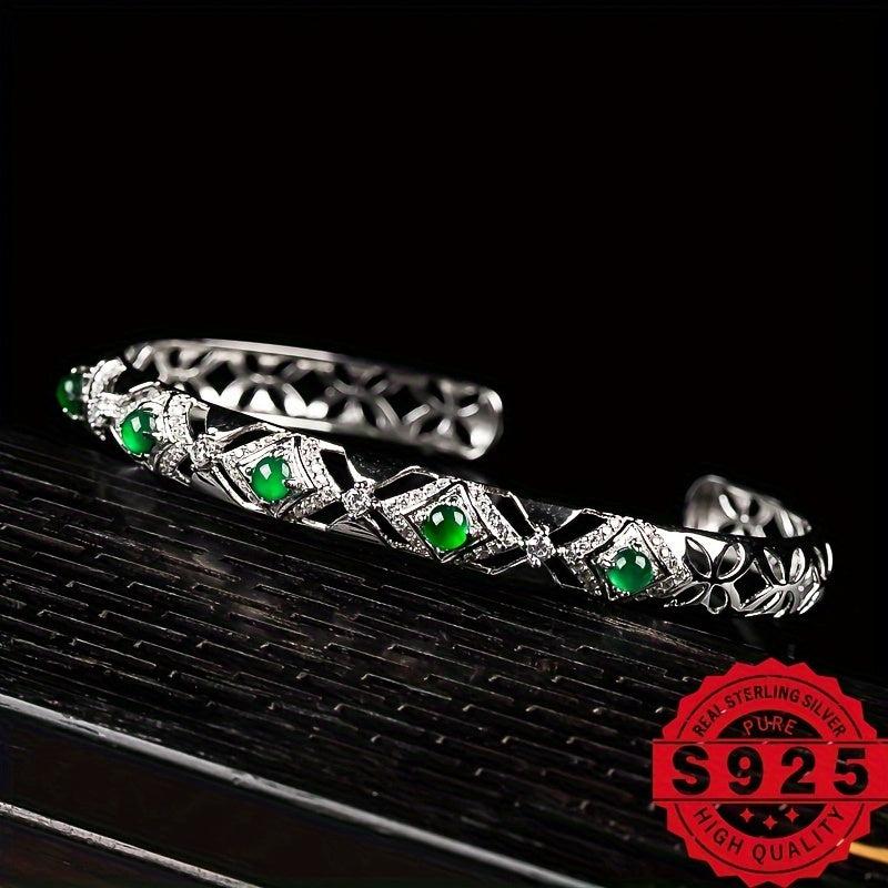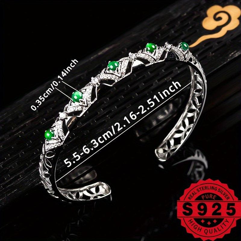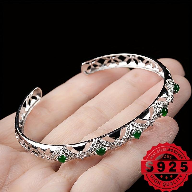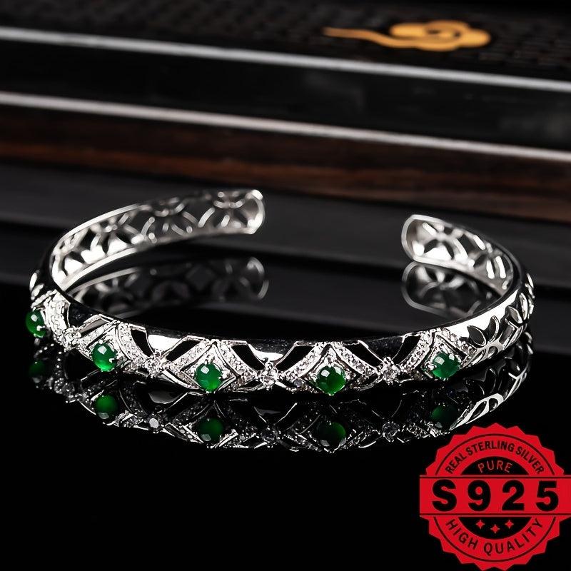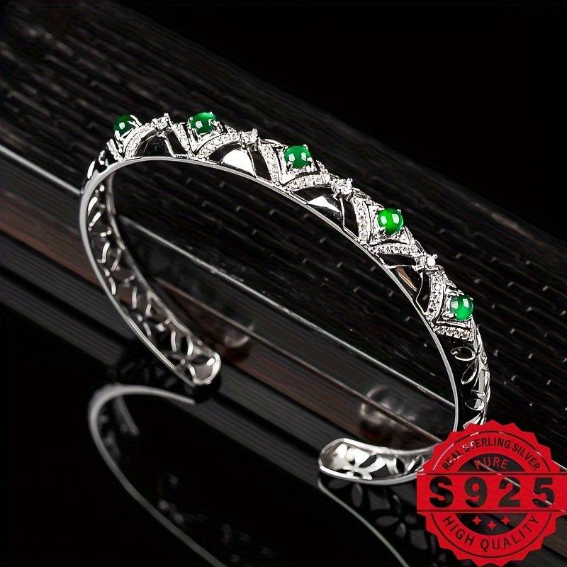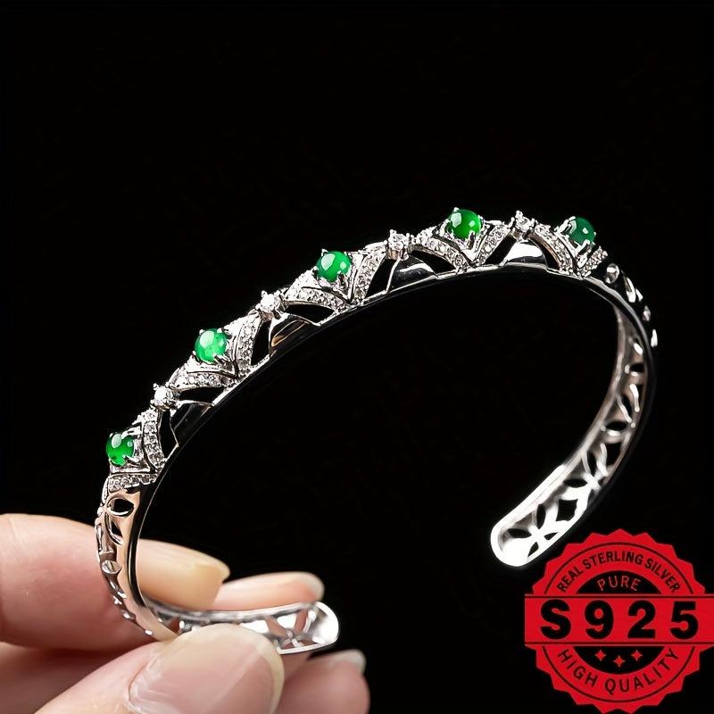 Dieses Armband verfügt über ein 925 -Silber -Design mit Natursteineissamen voller grüner Wasserverzierungen. Es ist ein perfektes Zubehör für Damen, die für DIY -Schmuckprojekte frei angepasst und angepasst werden können.