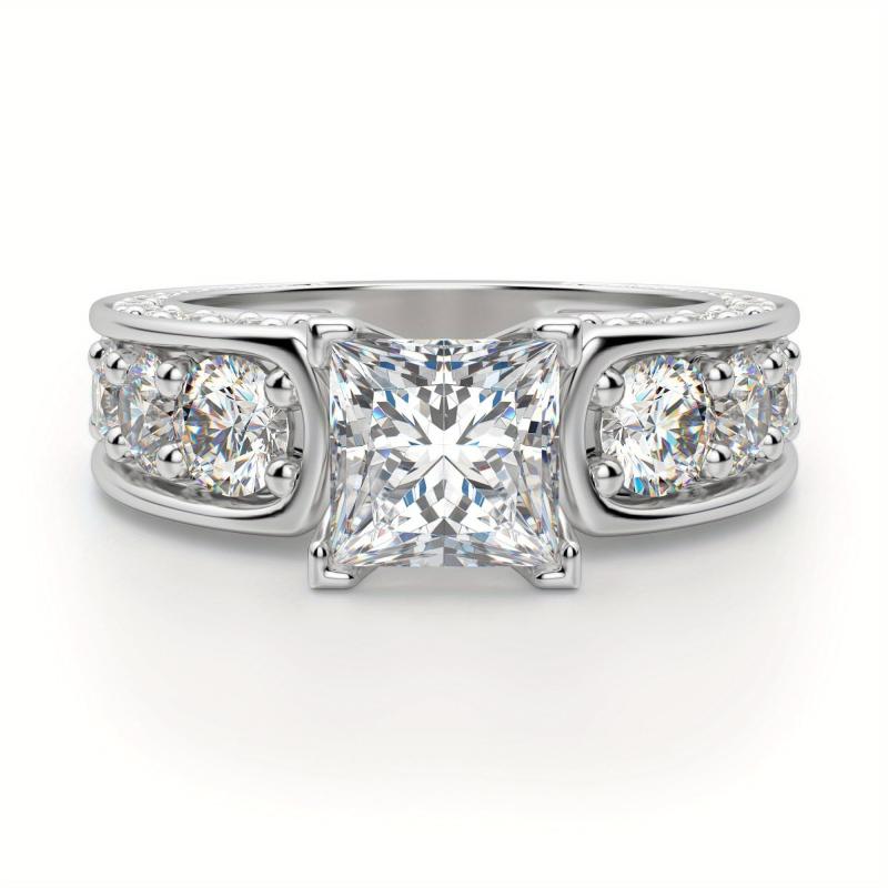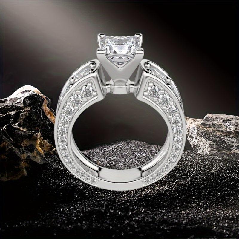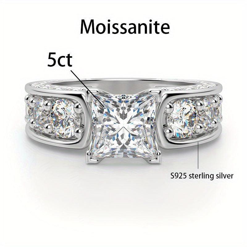 Elegant 925 sterling silver ring featuring a 5 carat princess cut moissanite, perfect for engagements, weddings, anniversaries, and promises.