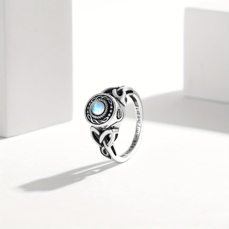 Beautiful urn ring crafted from 925 sterling silver with synthetic moonstone, perfect for keeping ashes of loved ones. Size O.