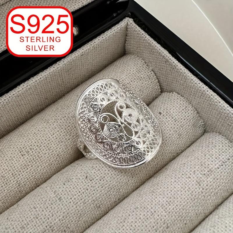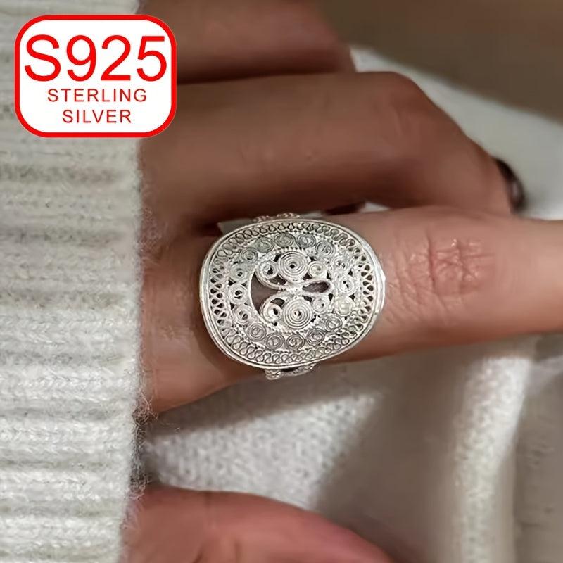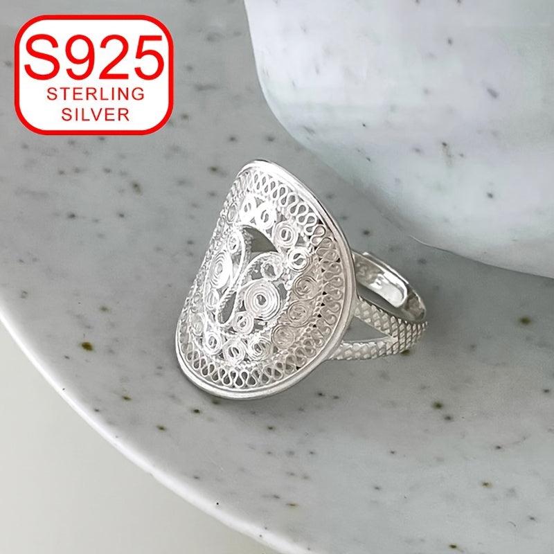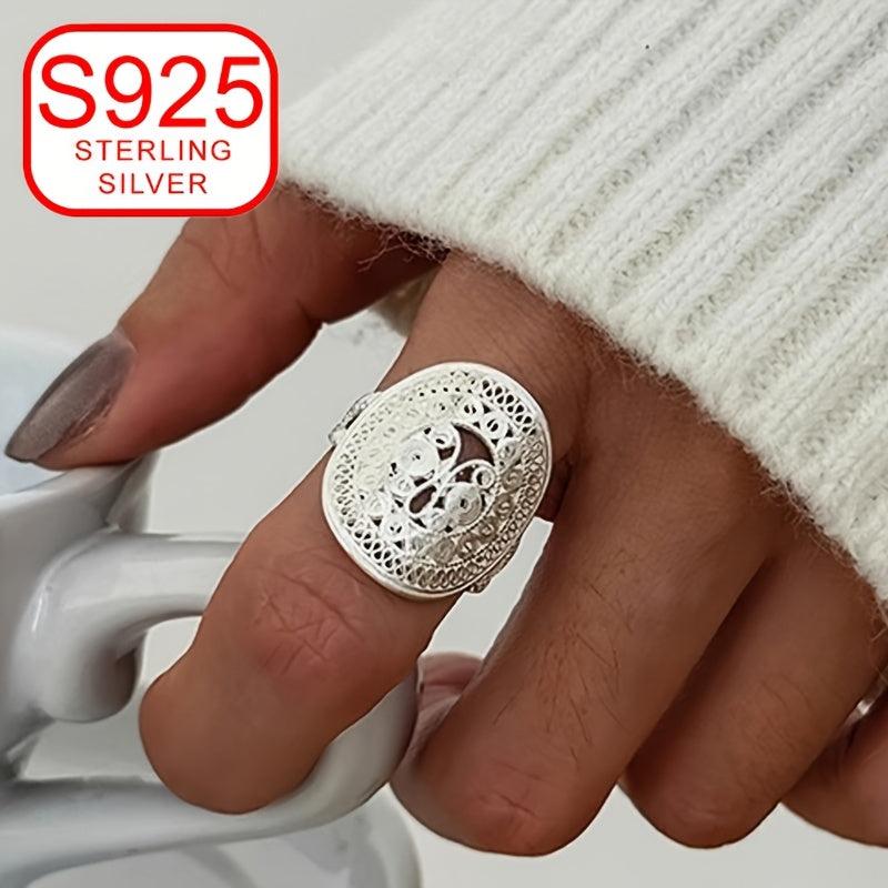 This 925 silver ring is hypoallergenic and features a stylish hollow texture design. It is perfect for wearing on the index finger or as a cocktail ring, making it versatile for couples or friends.