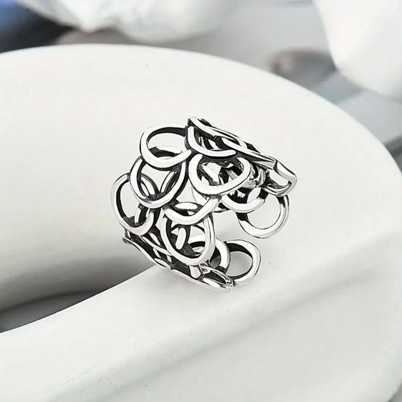 Add a touch of vintage hip hop style to your everyday look with this 925 sterling silver ring. The adjustable wide face design in a vibrant red color makes it perfect for daily wear.