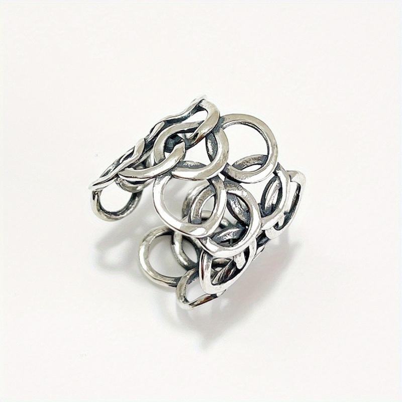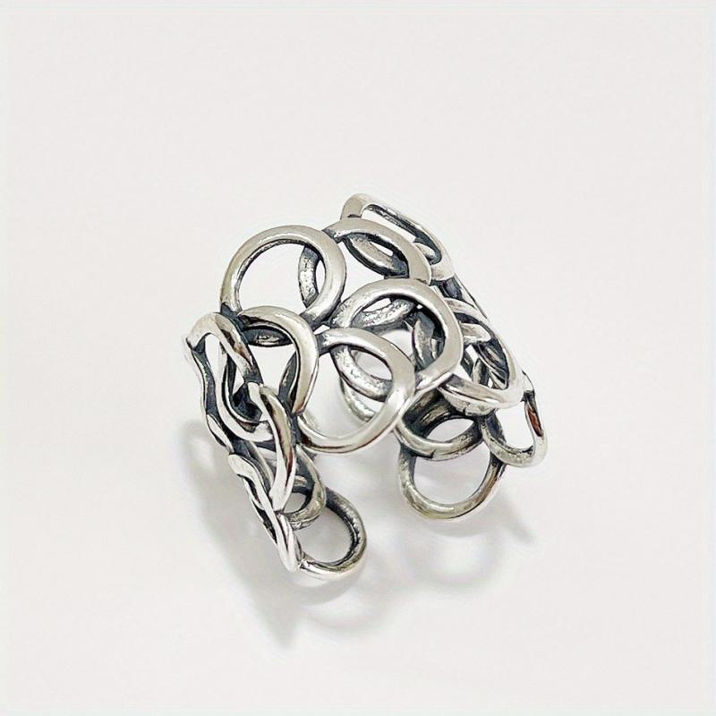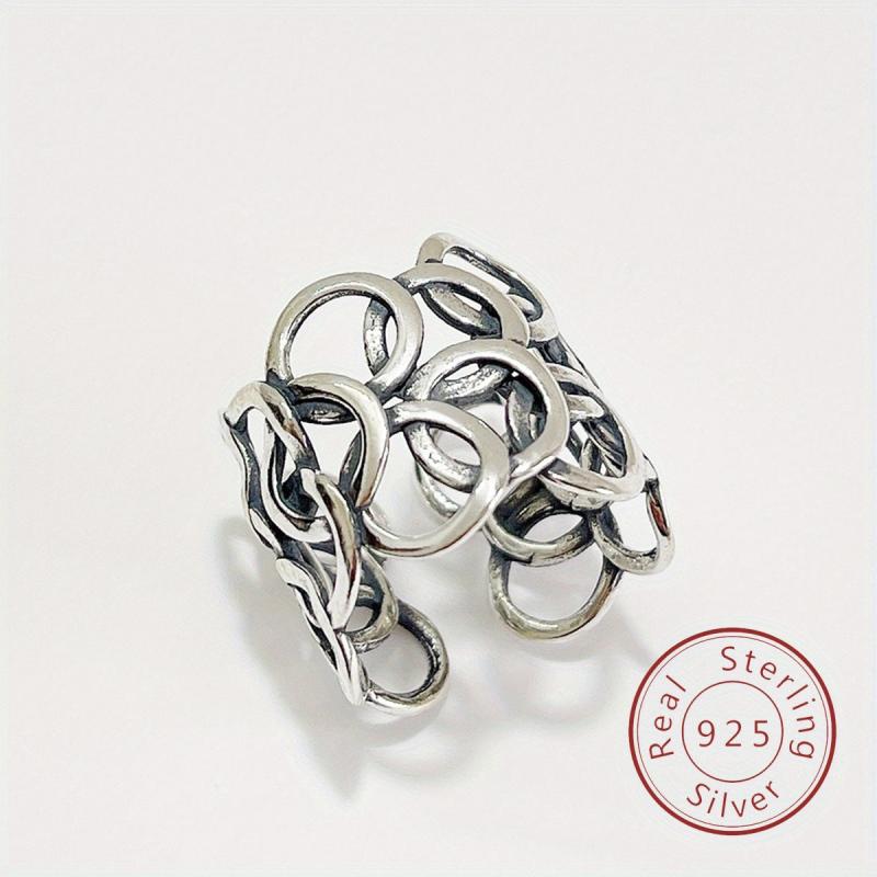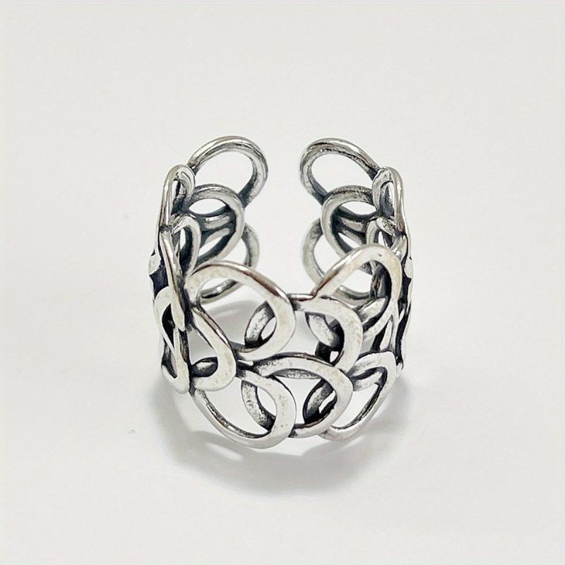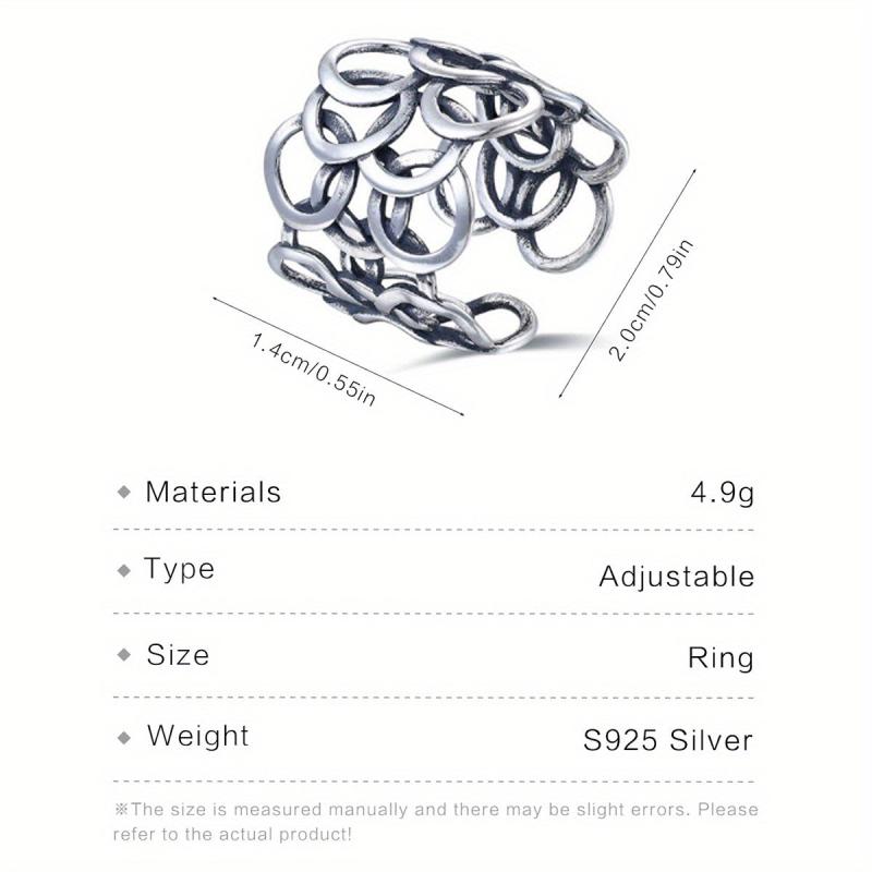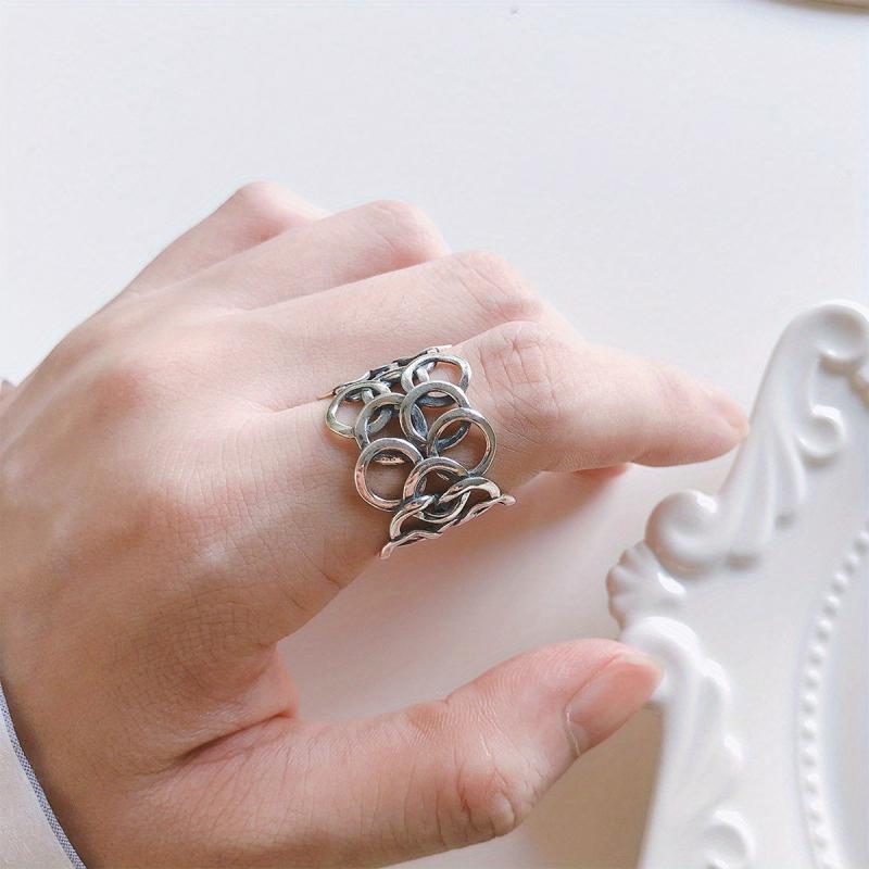 925 Silver Minimalist Retro Hip Hop Adjustable Red Wide Ring for Daily Wear