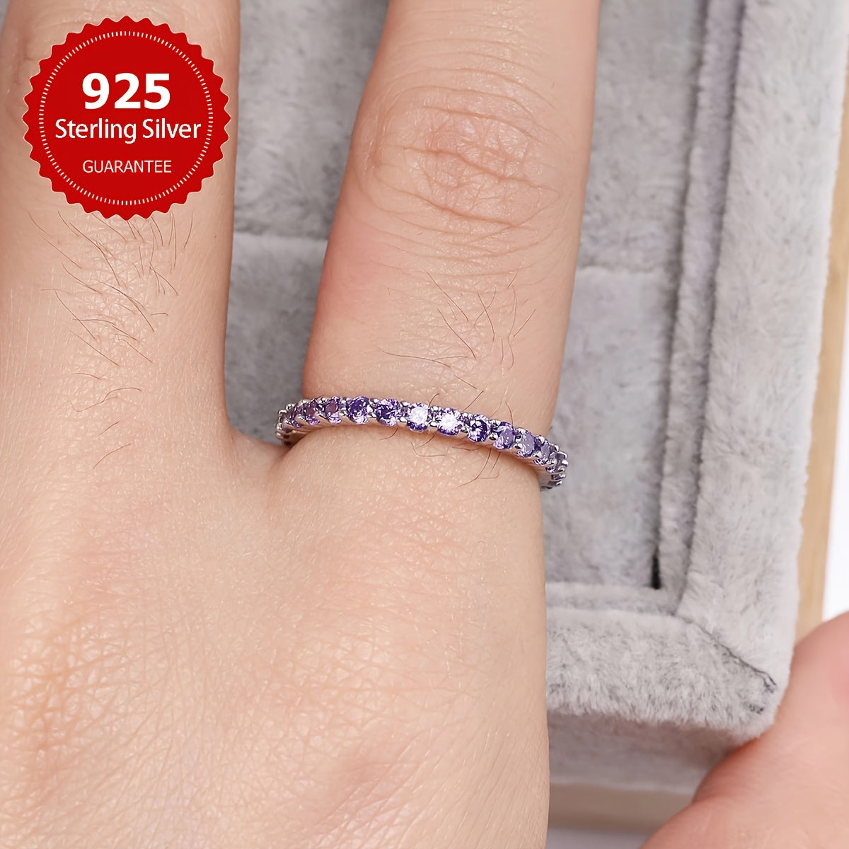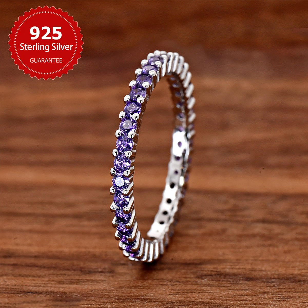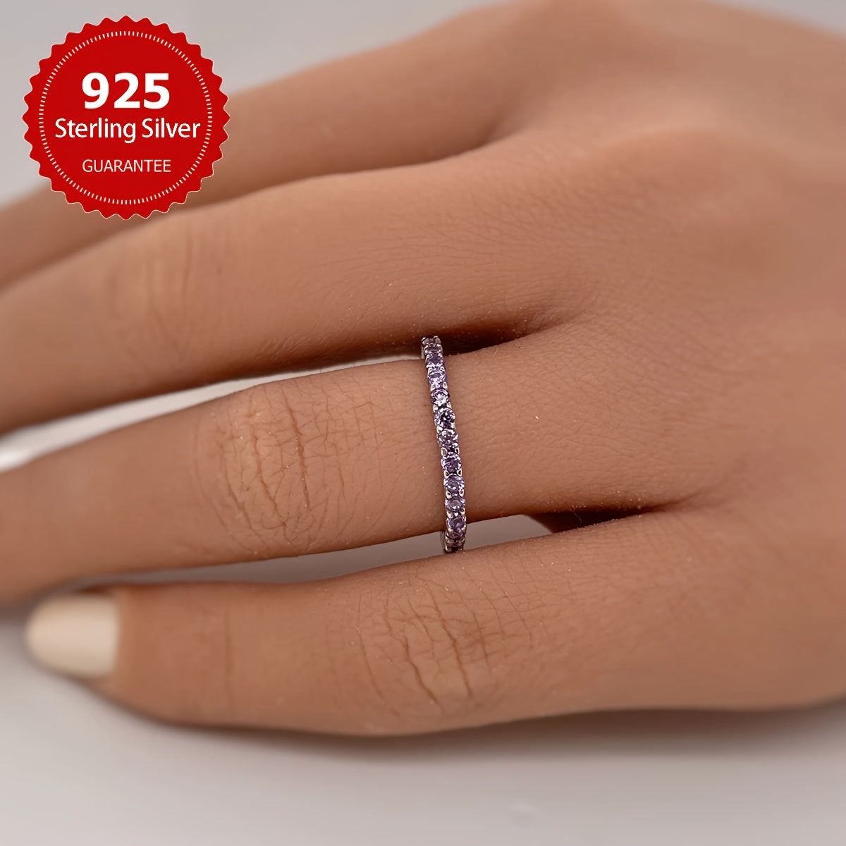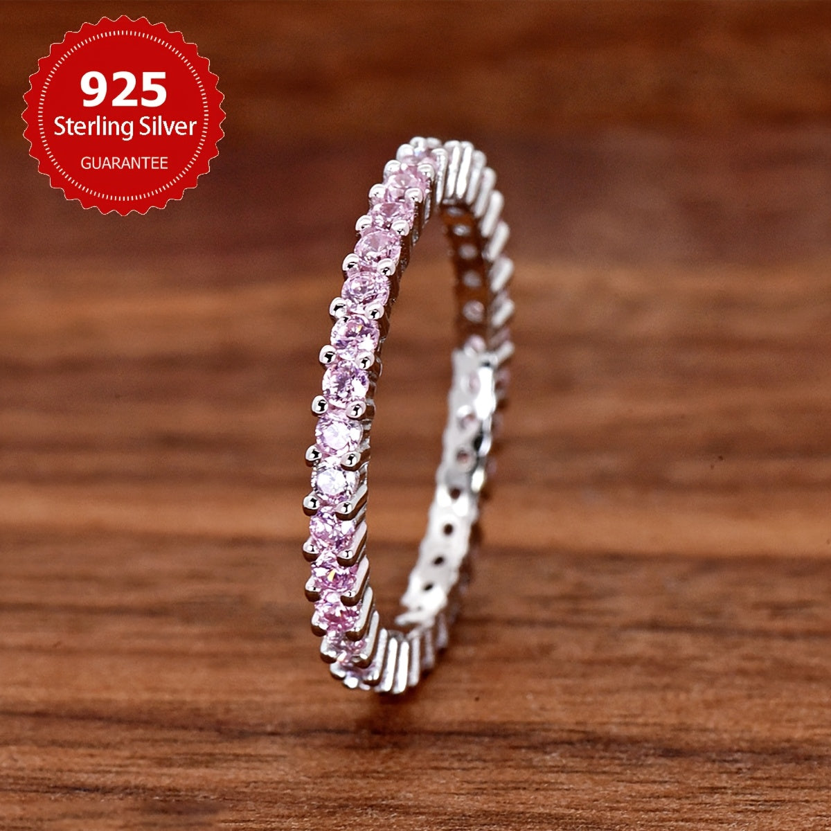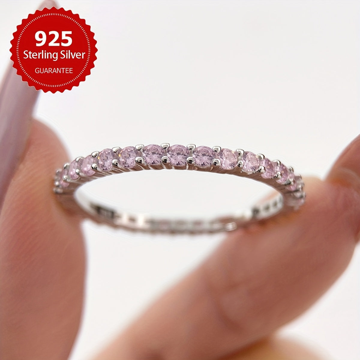 This stunning eternity ring features pink cubic zirconia stones set in 925 sterling silver. Ideal for weddings and everyday wear, it makes a perfect Valentine's gift for women.