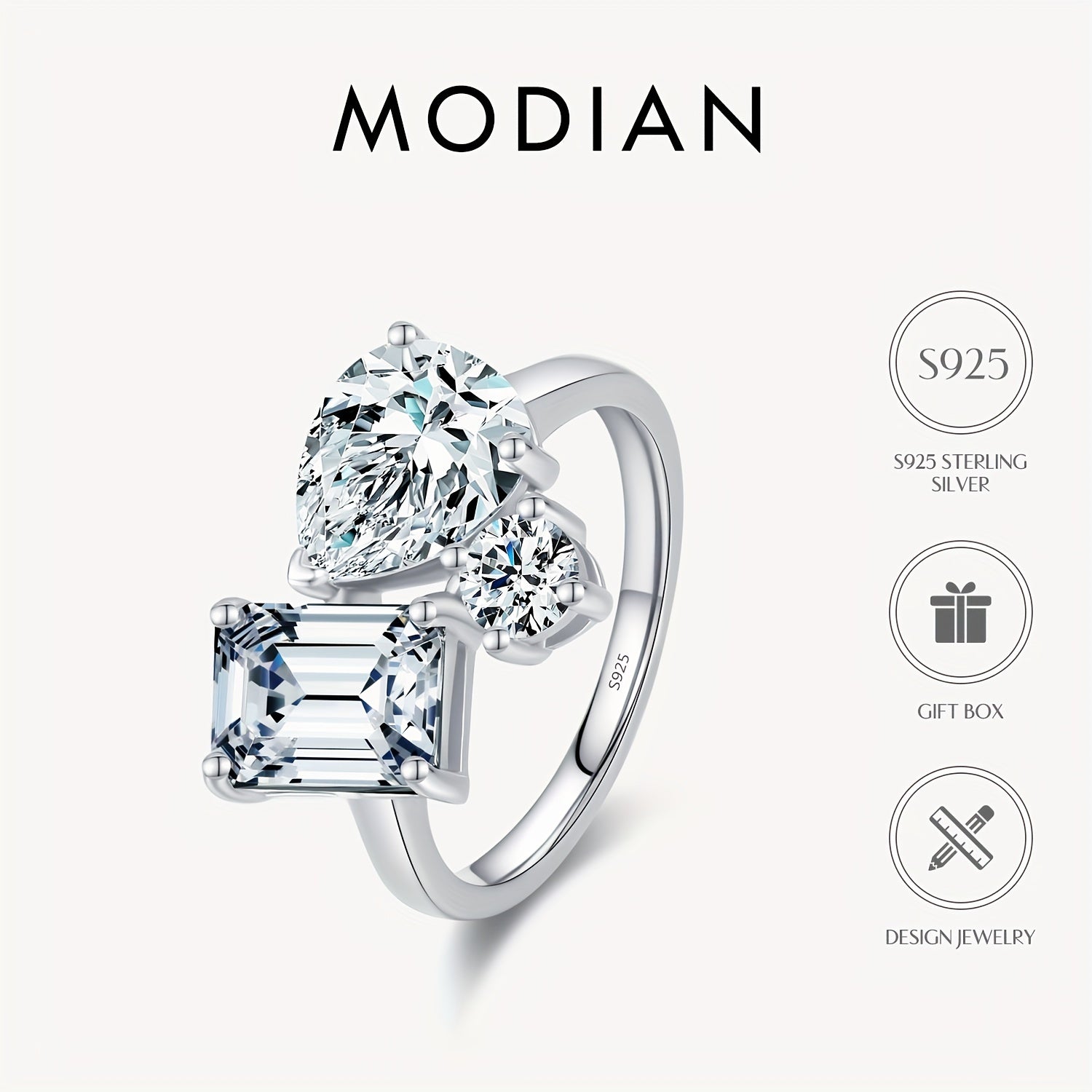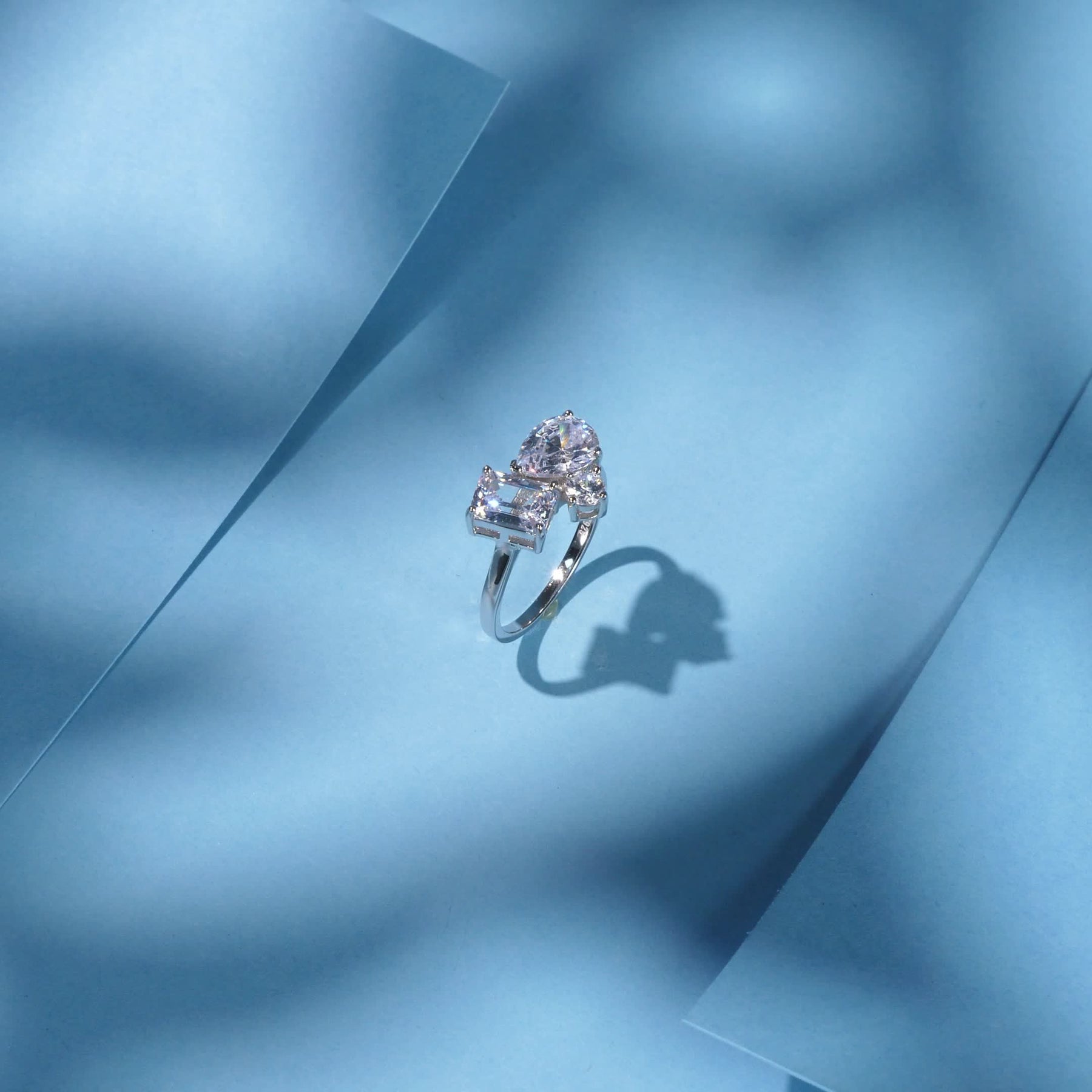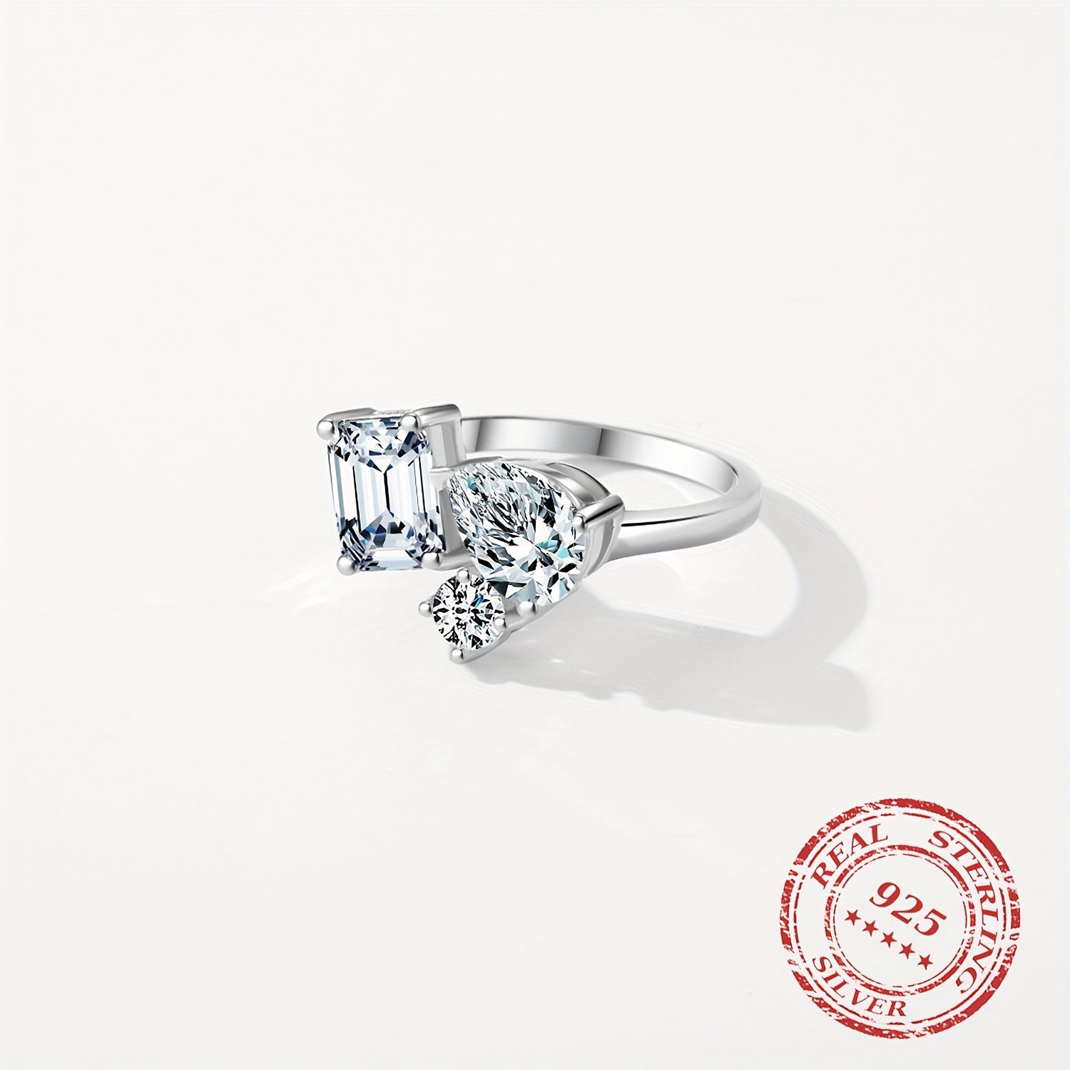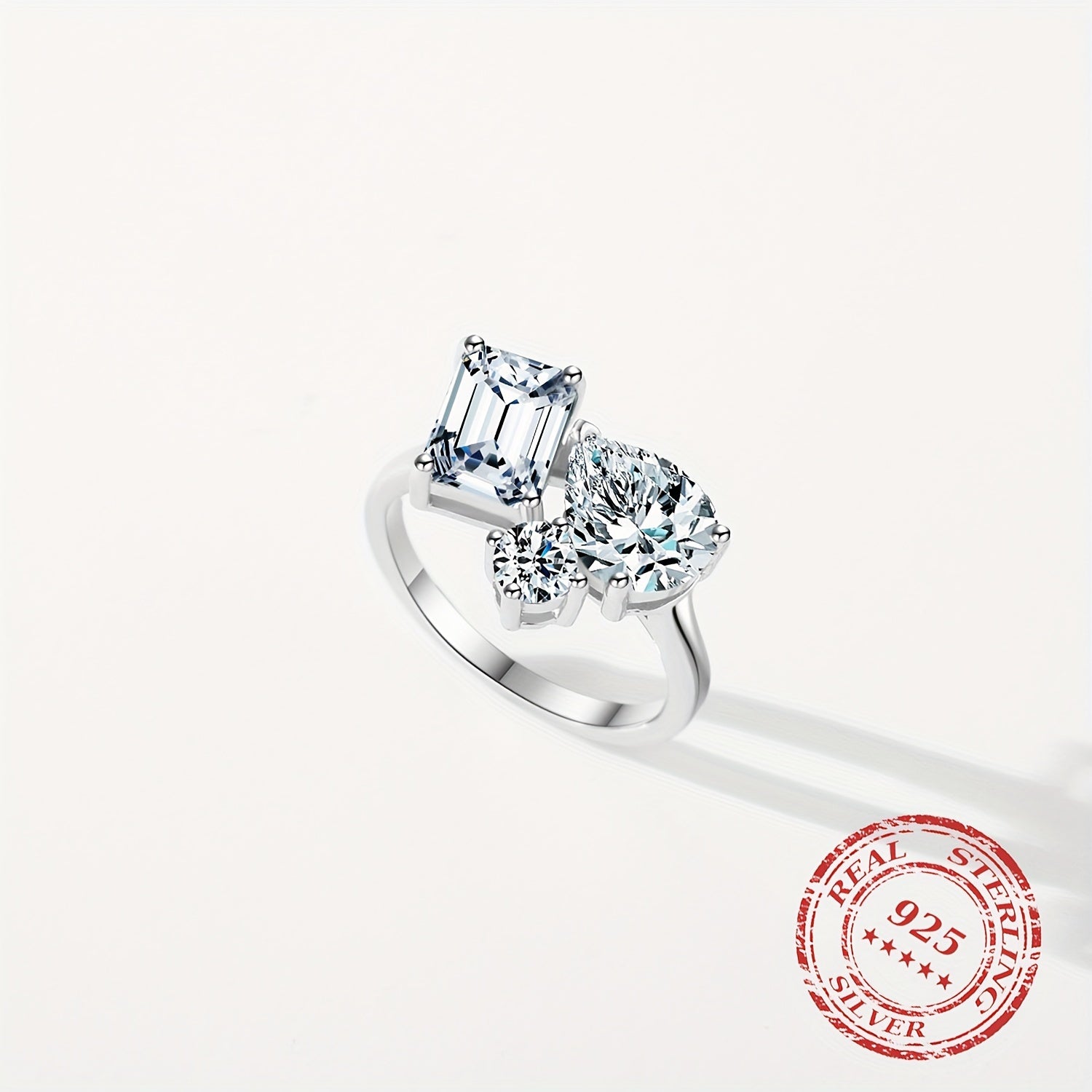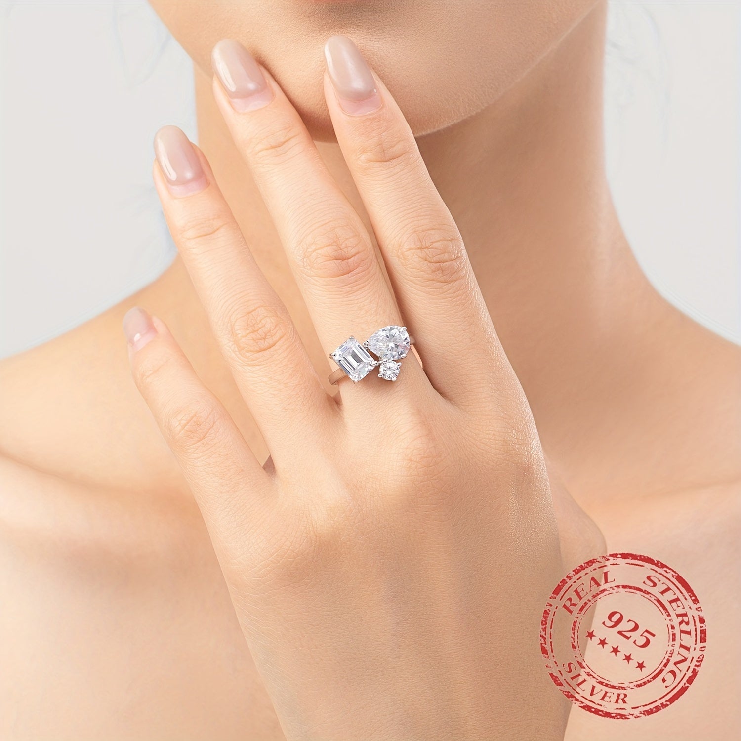 925 Silver Ring w/ Geometric Zirconia for Weddings & Vacations