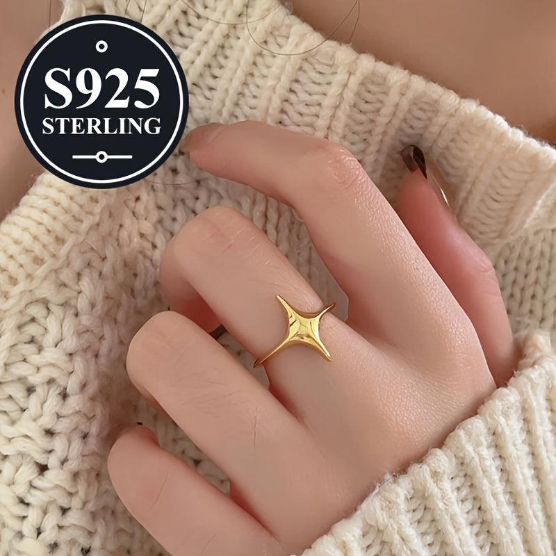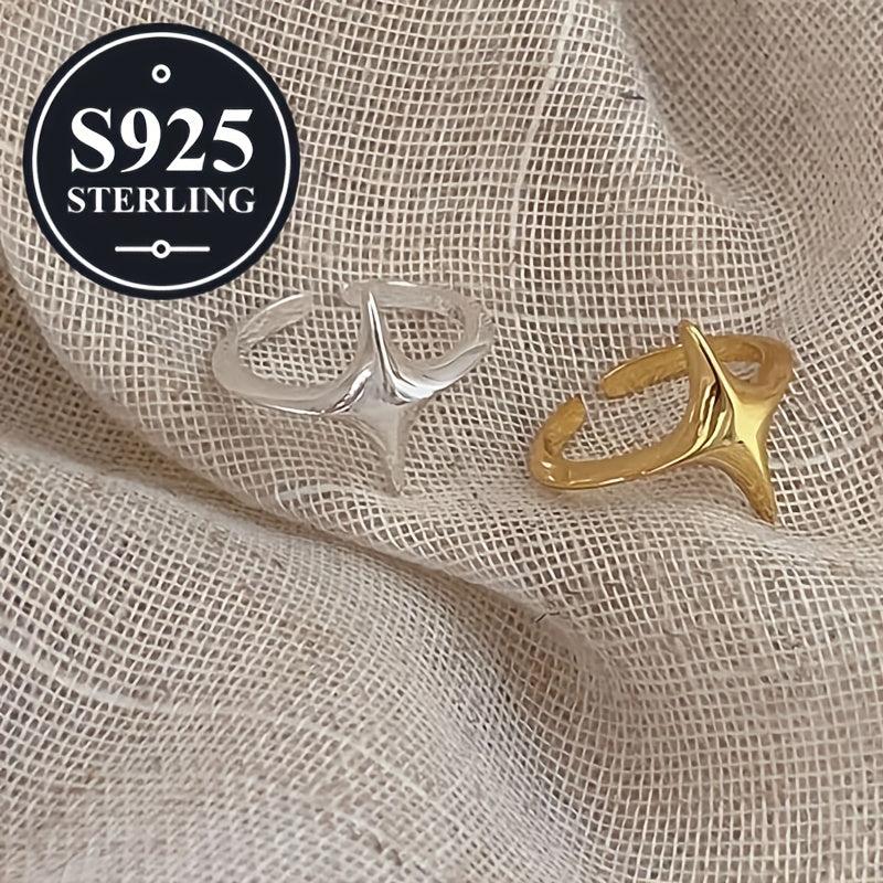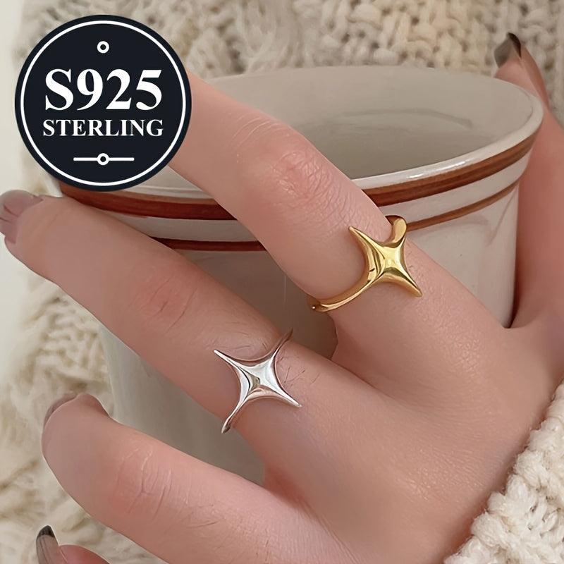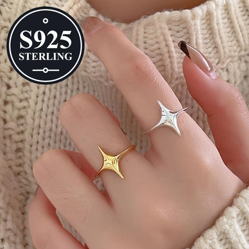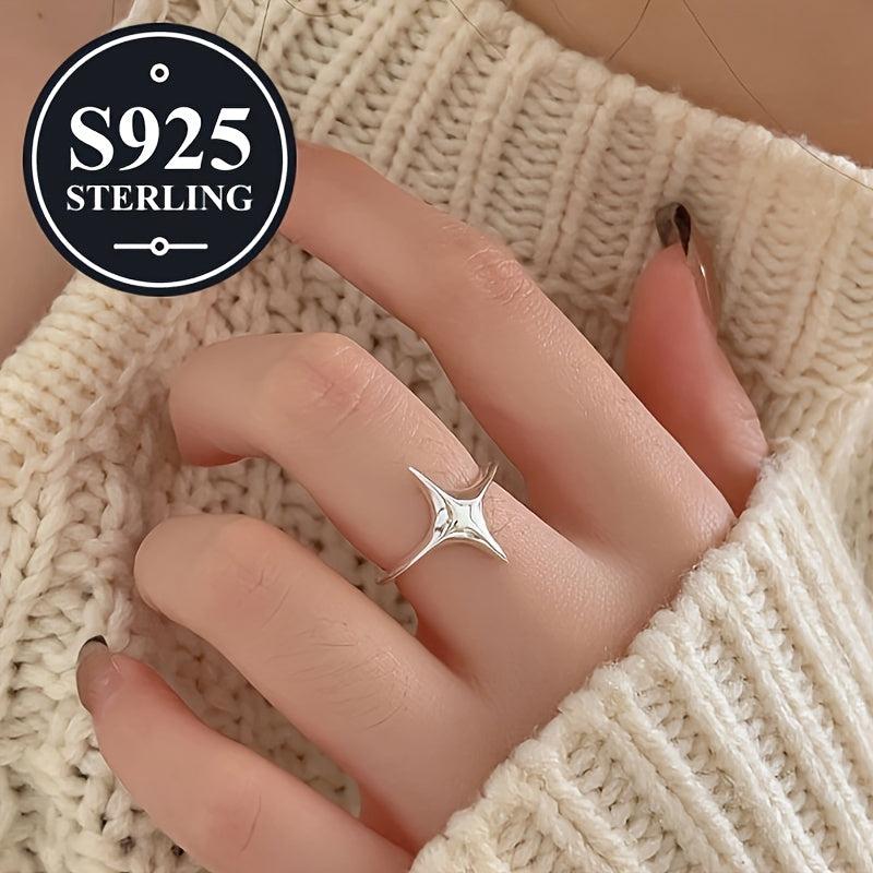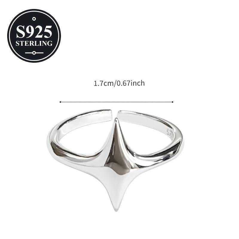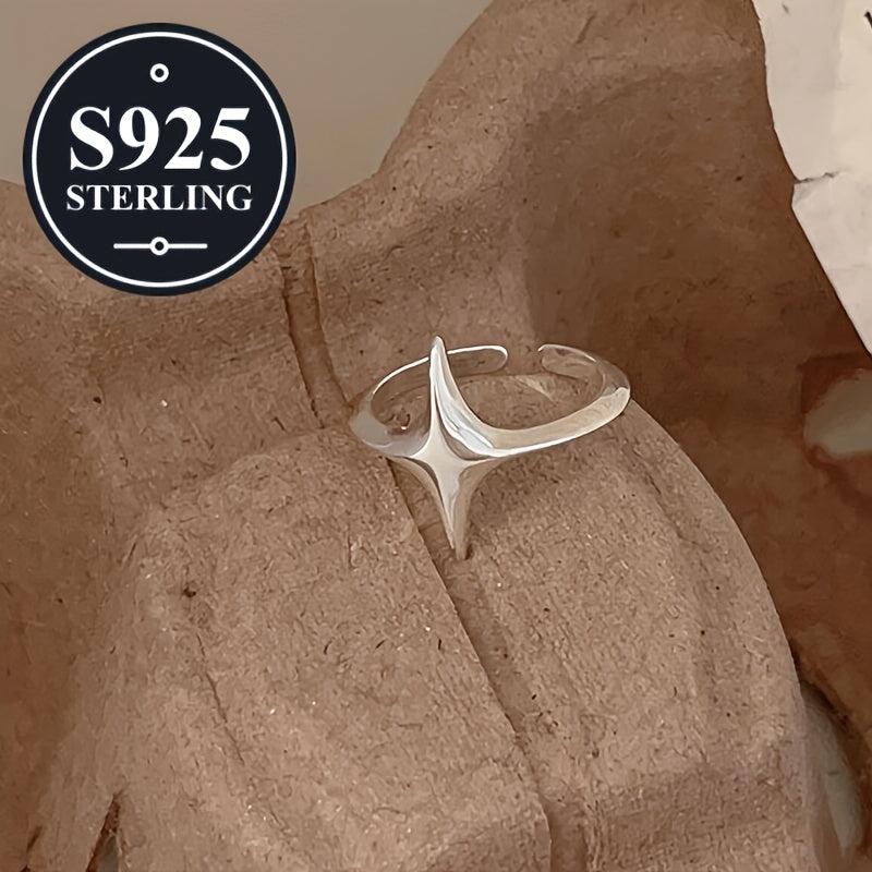 925 Silver Star Ring Adjustable Open Polished Finish Gift for Her
