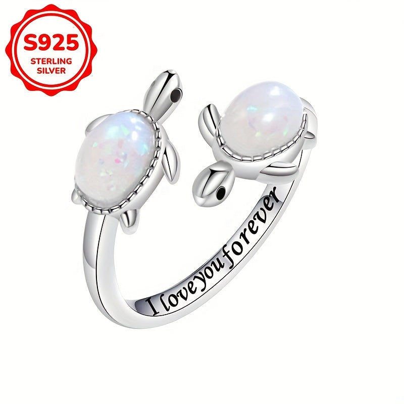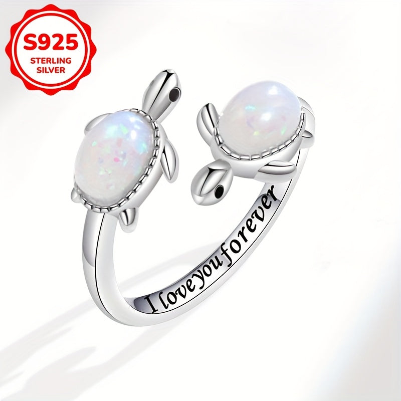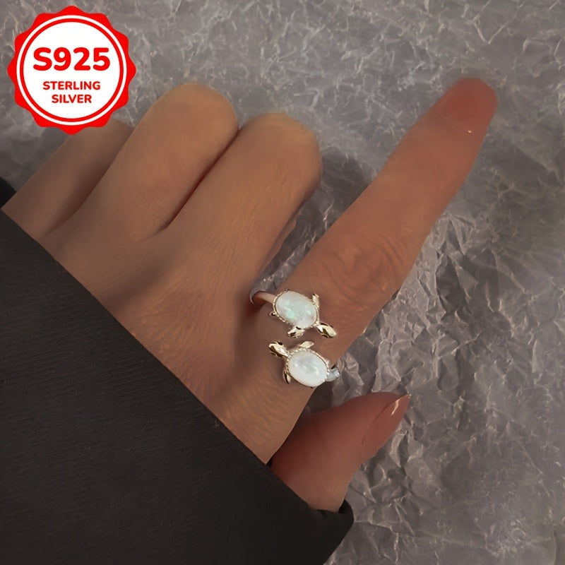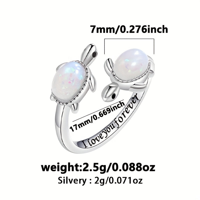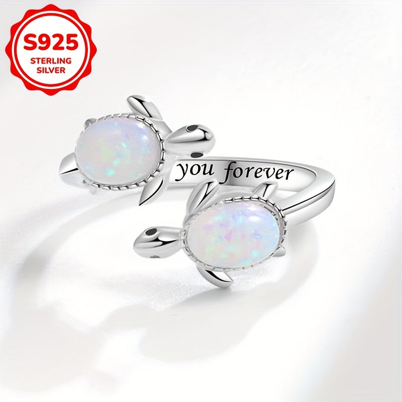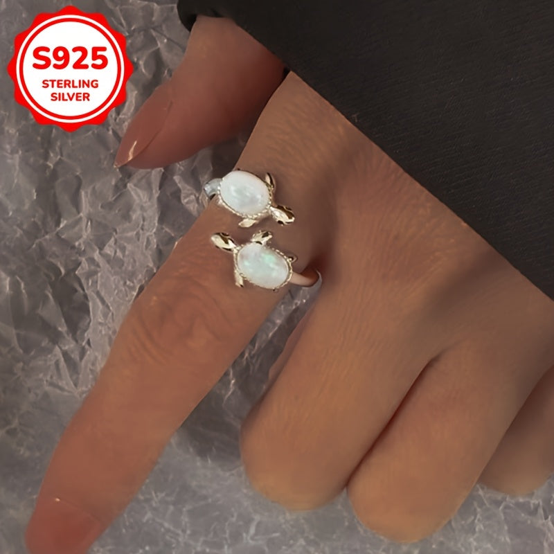 925 Silver Turtle Open Ring with Opal for Daily Wear & Gift
