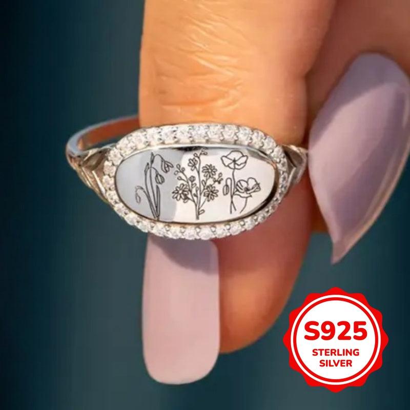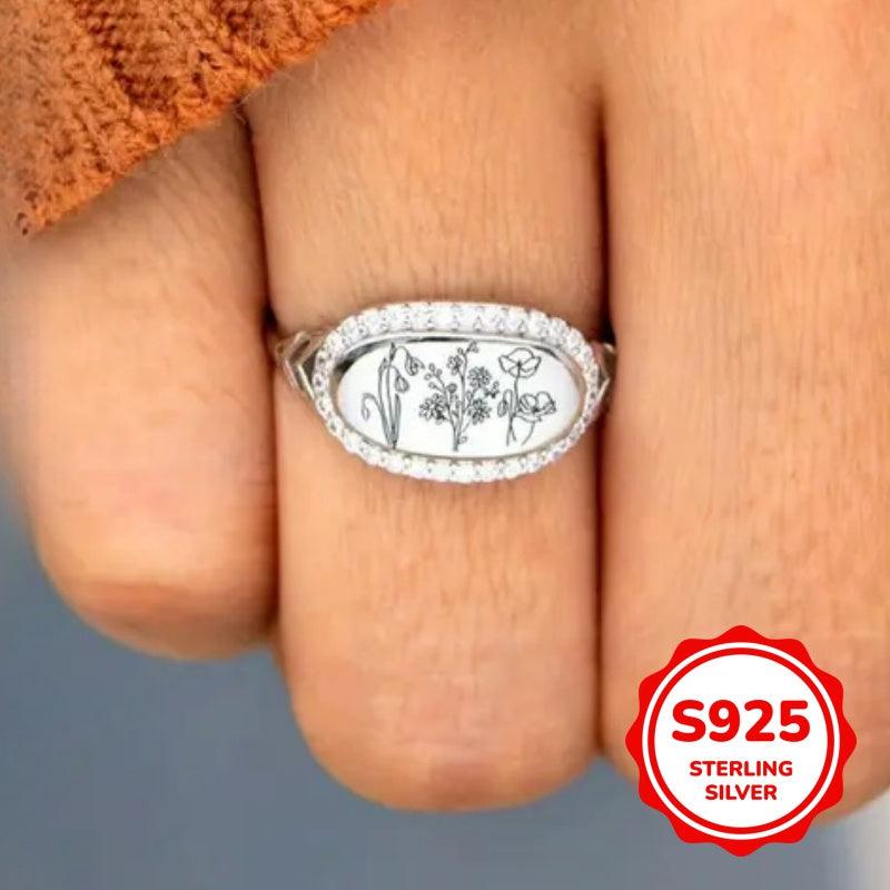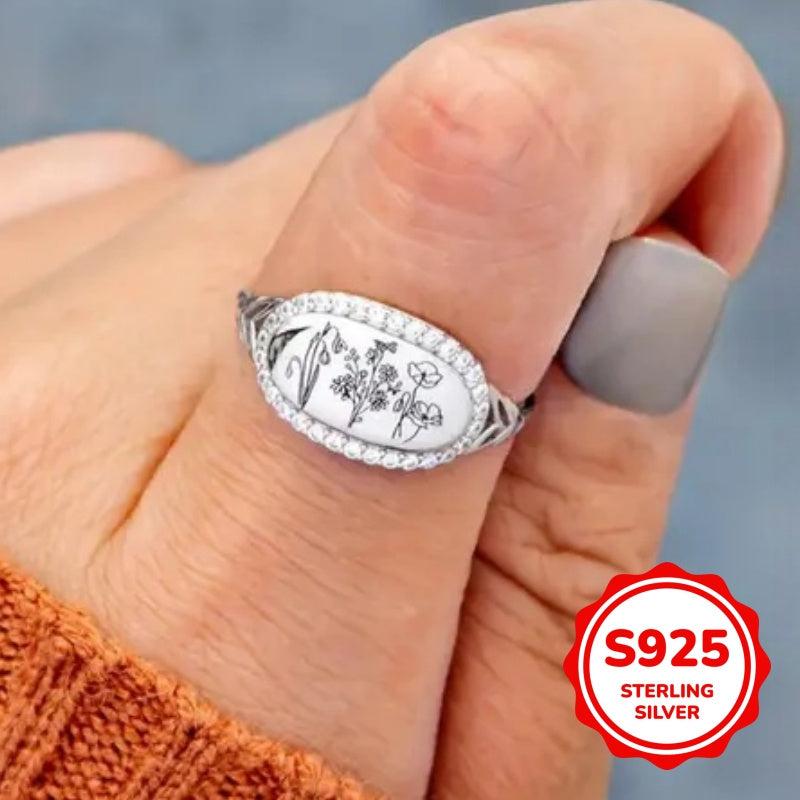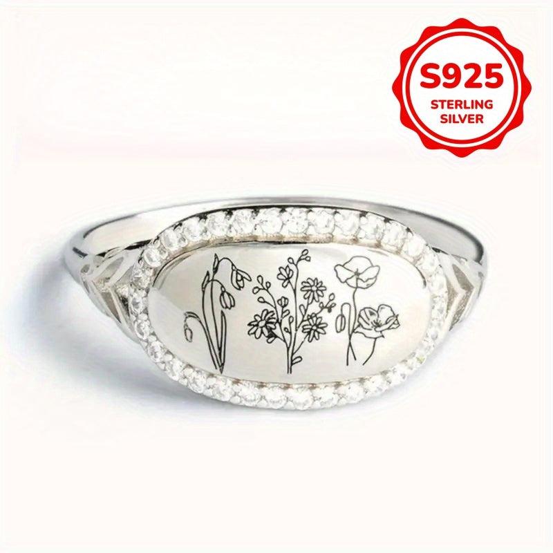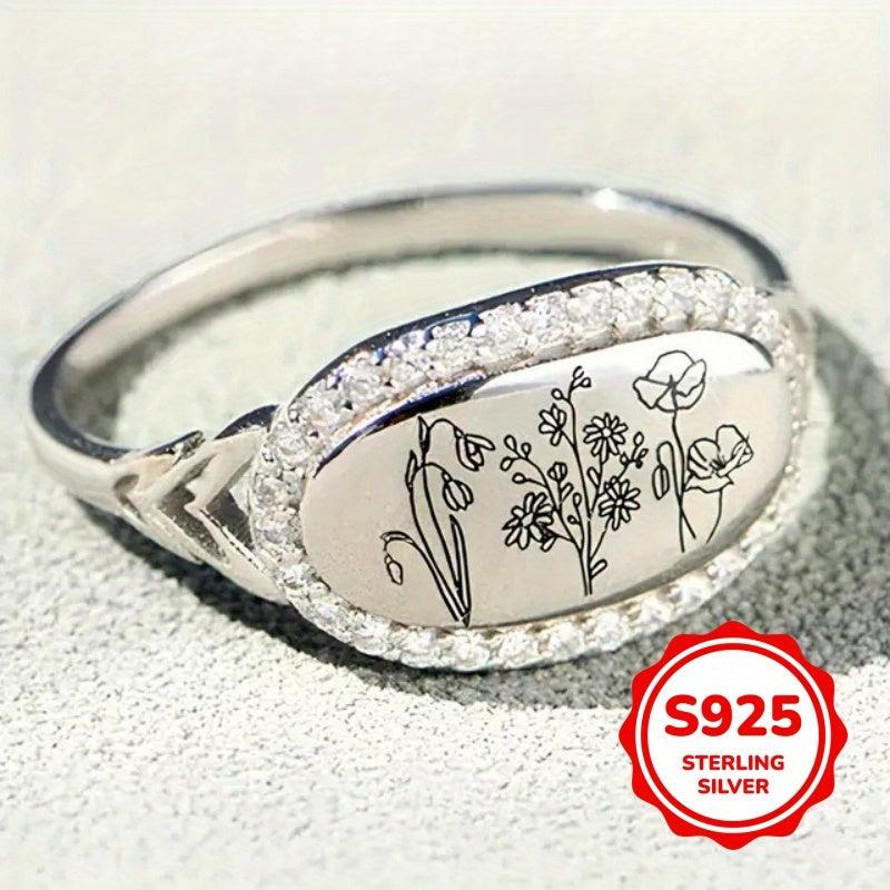 Add a touch of elegance with this 925 sterling silver statement ring featuring synthetic zirconia stones in a beautifully carved floral design.
