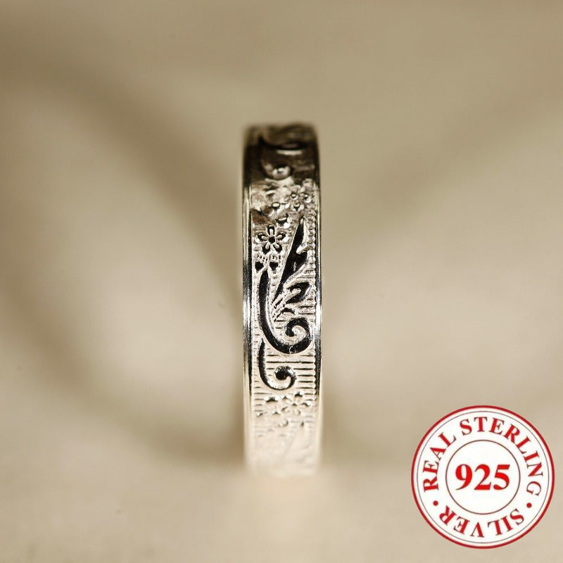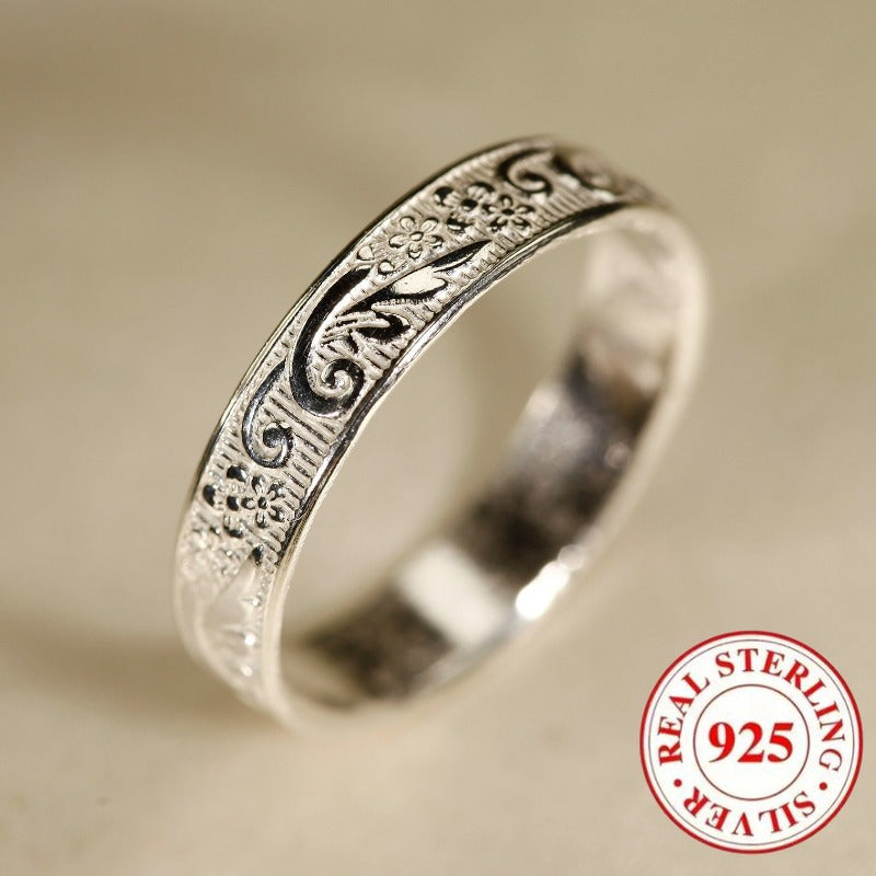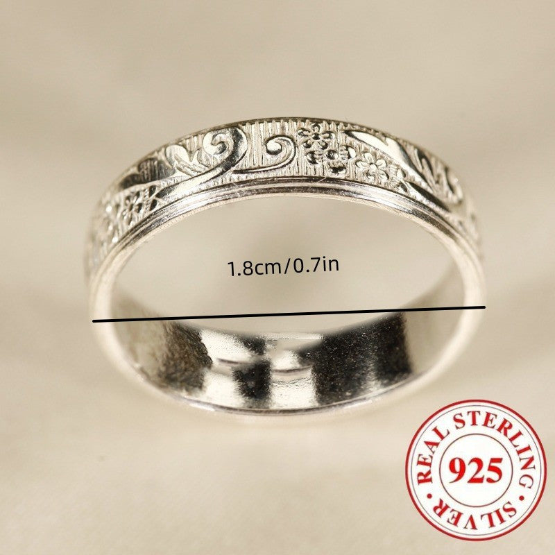 This stylish 925 pure silver ring features a retro carved pattern, making it suitable for daily wear, parties, and banquets. It also makes a great jewelry gift.
