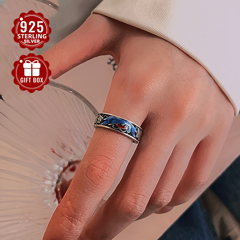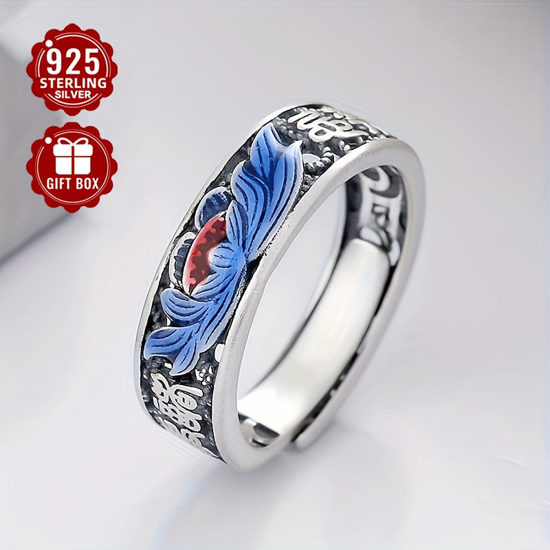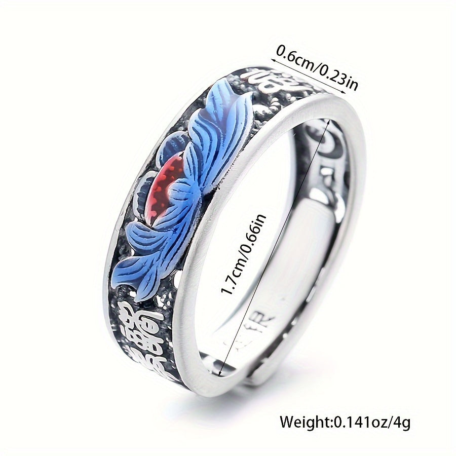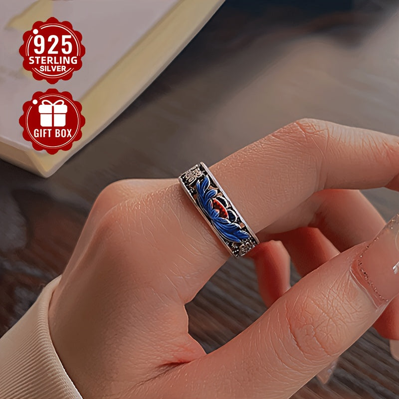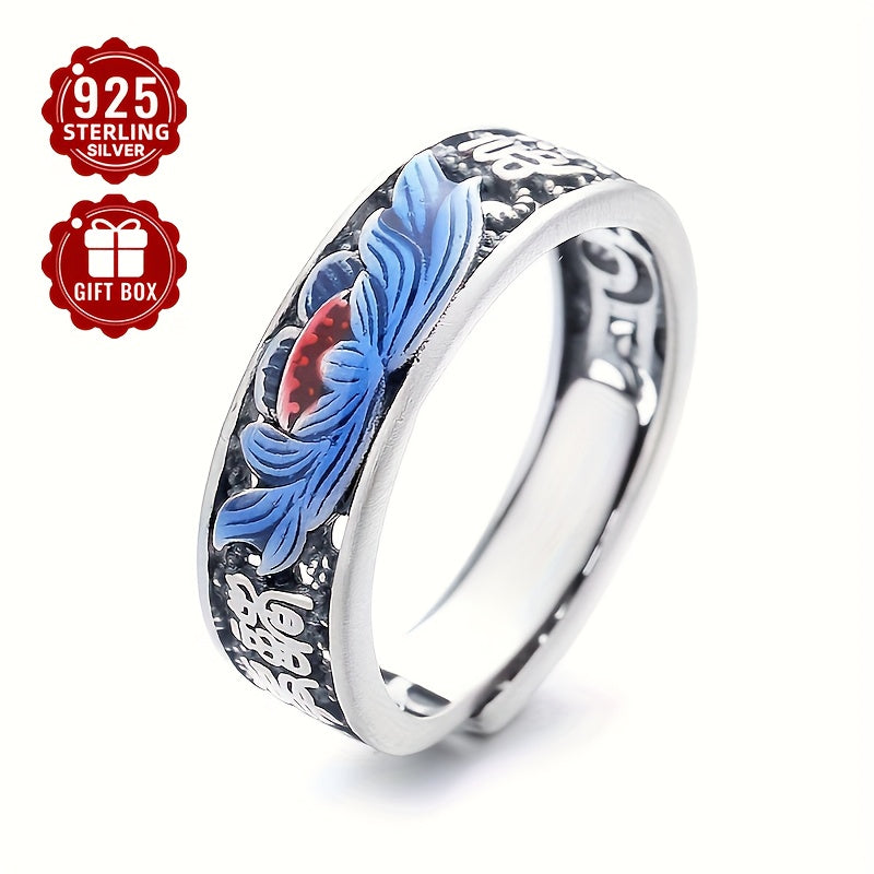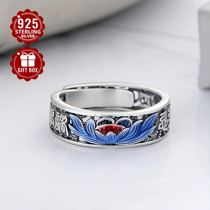 925 Sterling Silver Cloisonn Filigree Lotus Ring, Retro Ethnic Style