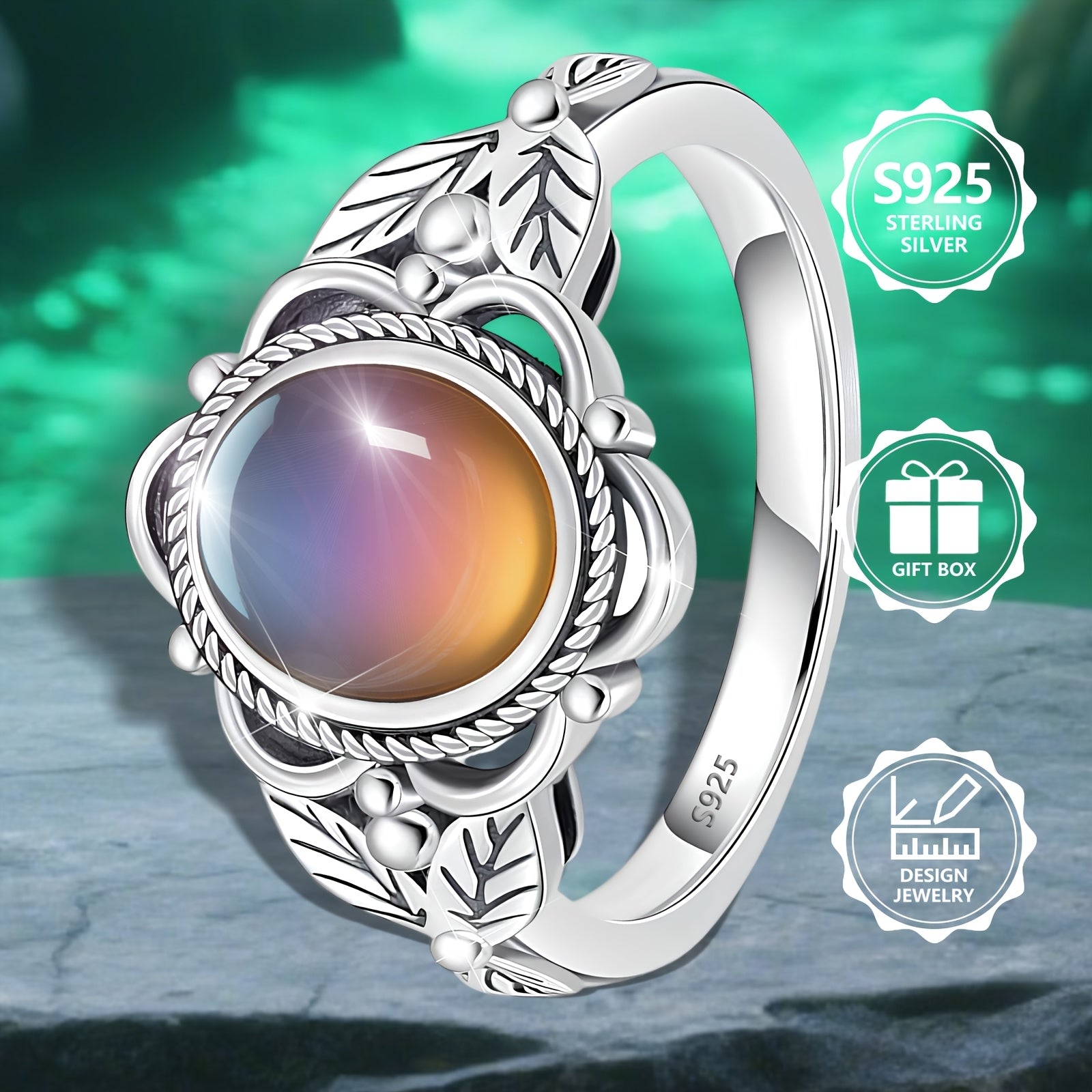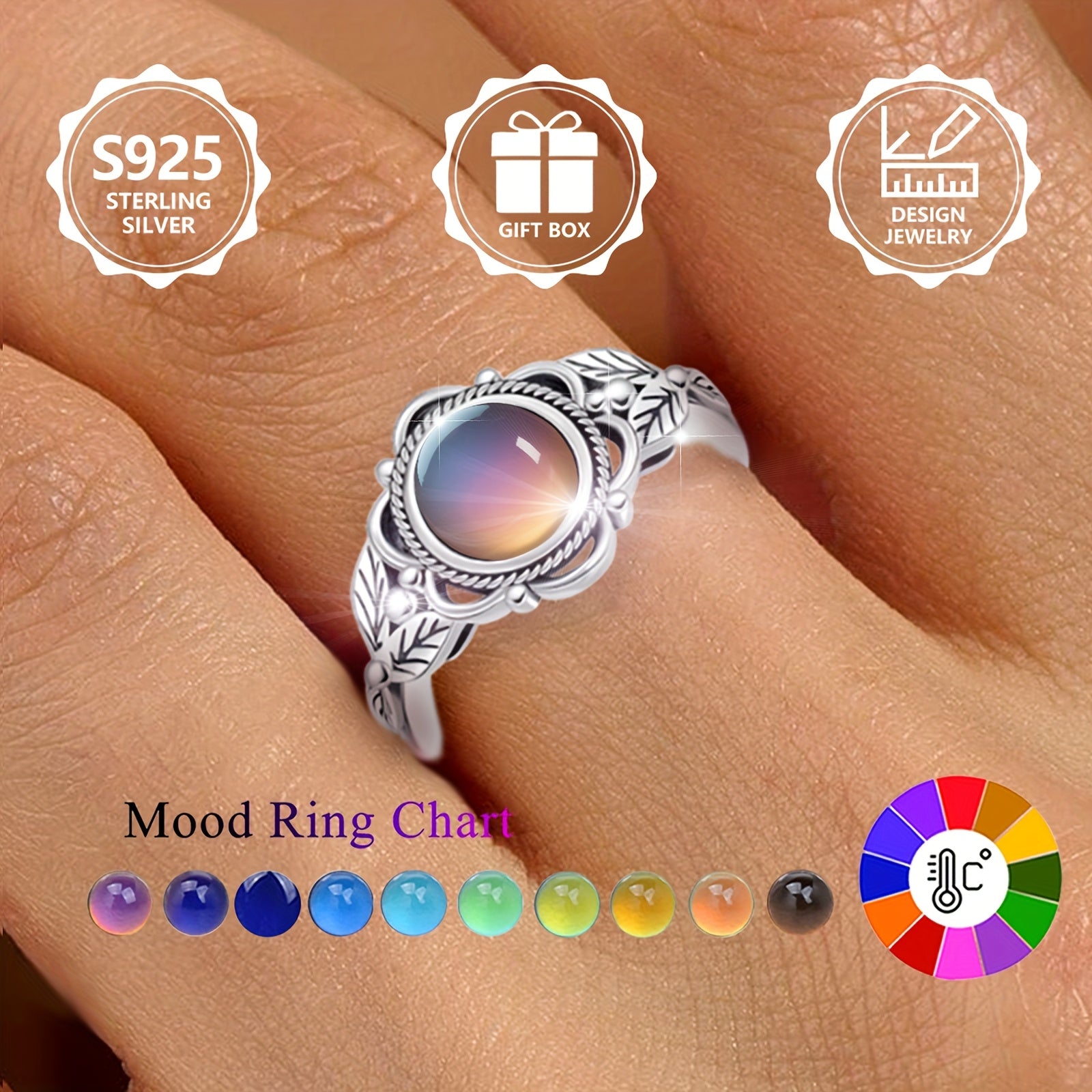 This round mood-sensing changing ring is made of hypoallergenic 925 sterling silver, perfect for daily wear. It's an ideal gift for Thanksgiving.