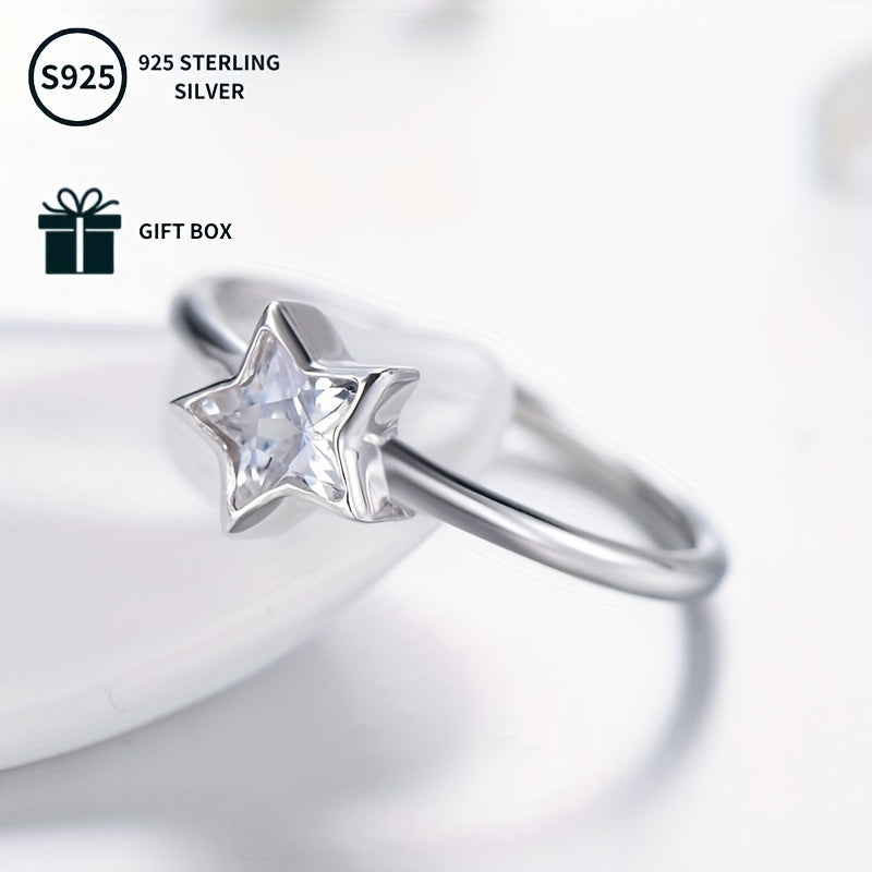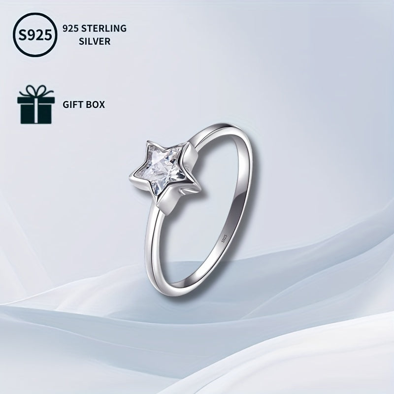 Dieser einzelne Sternring wird aus 925 Sterlingsilber mit synthetischer Kubikzirkonien für einen funkelnden Touch hergestellt. Es verfügt über ein silbriges Band in einem ungezwungenen Stil.