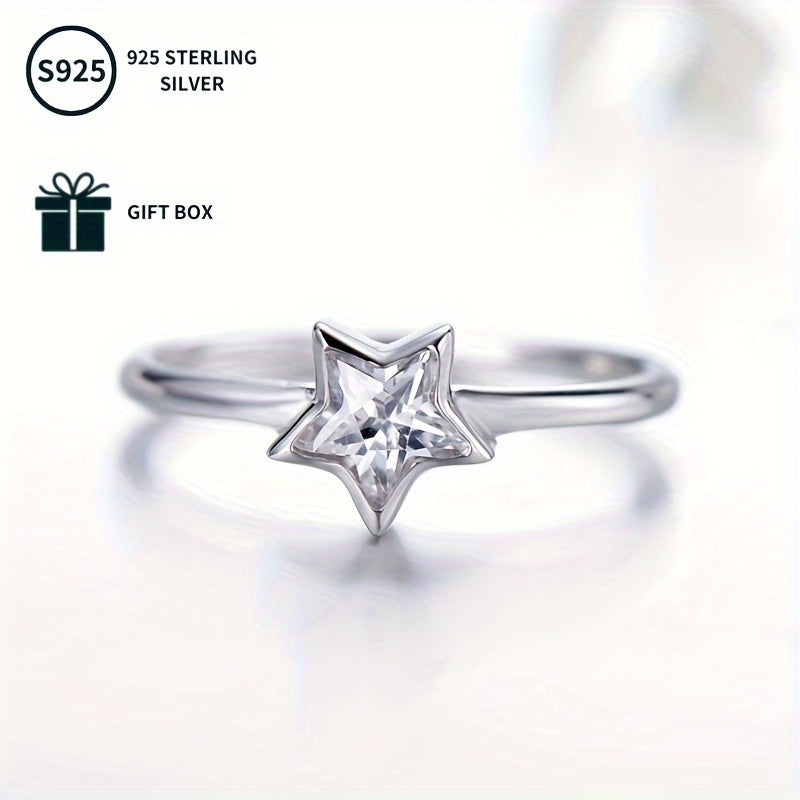 925 Sterling Silver Star Ring with CZ Sparkling Band for Engagement