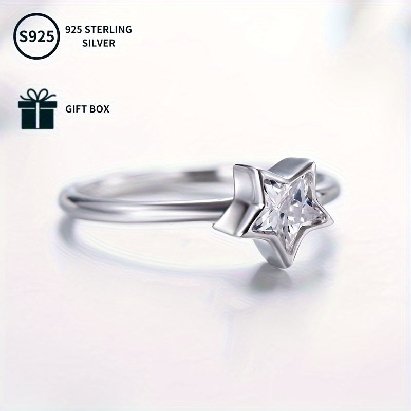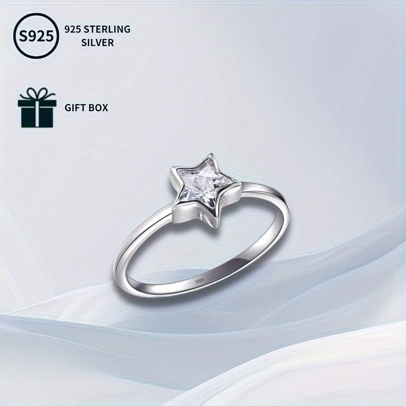 • 925 Sterling Silver Star Ring mit funkelnden CZ