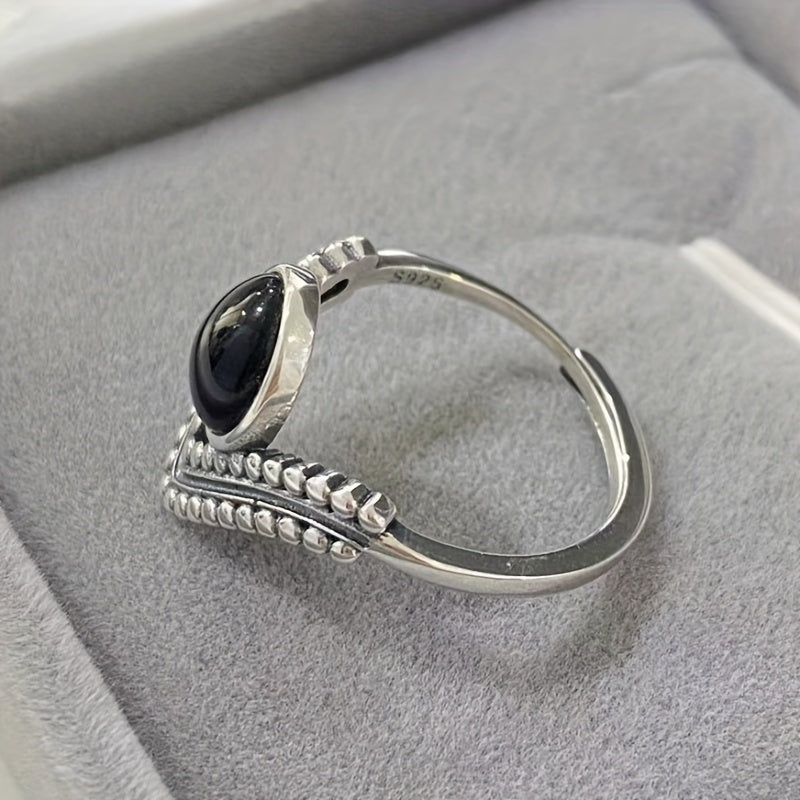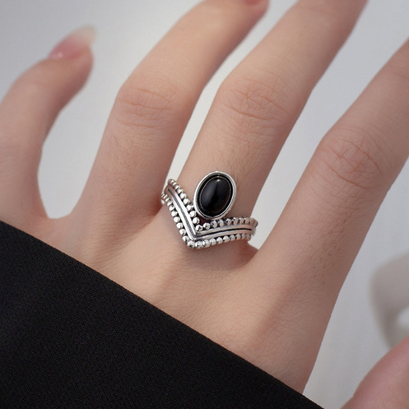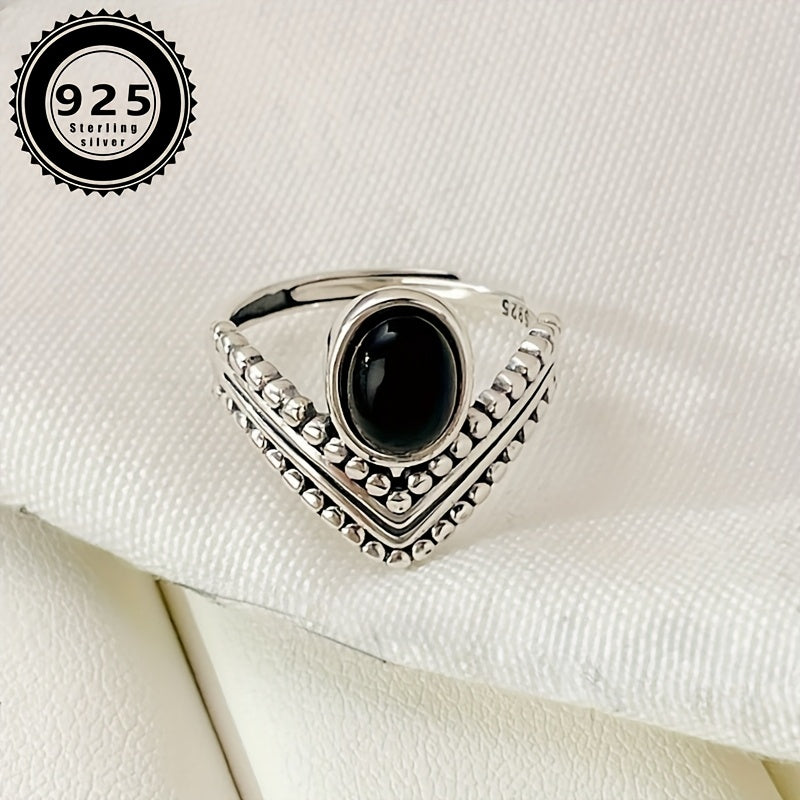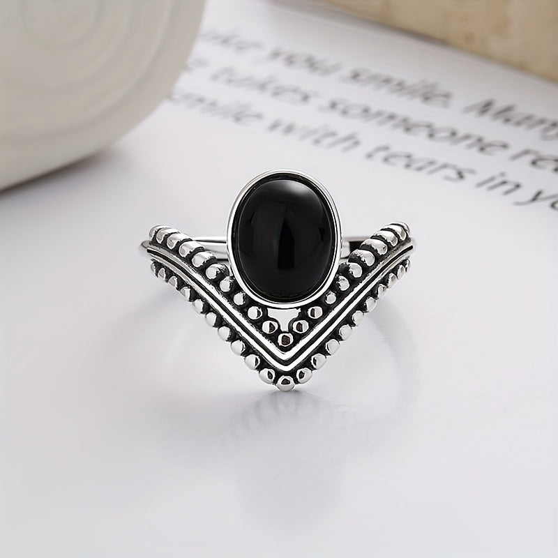 This TVXK ring features a V-shaped crown design with an oval synthetic agate stone in Thai retro style. Weighing 4g (0.14oz), it is perfect for daily wear and gift giving, especially for Valentine's Day.