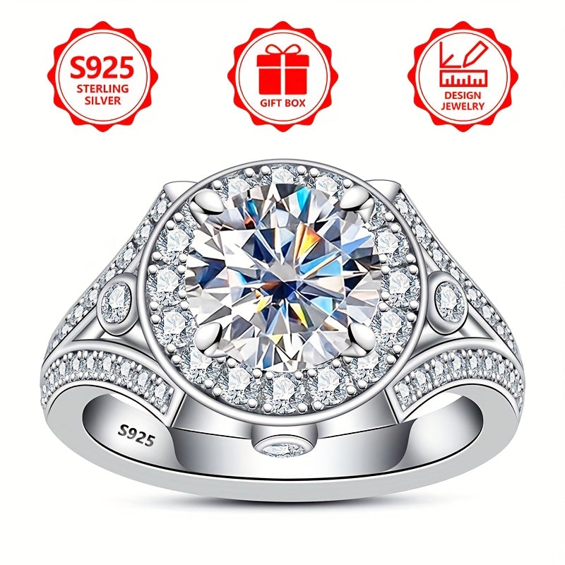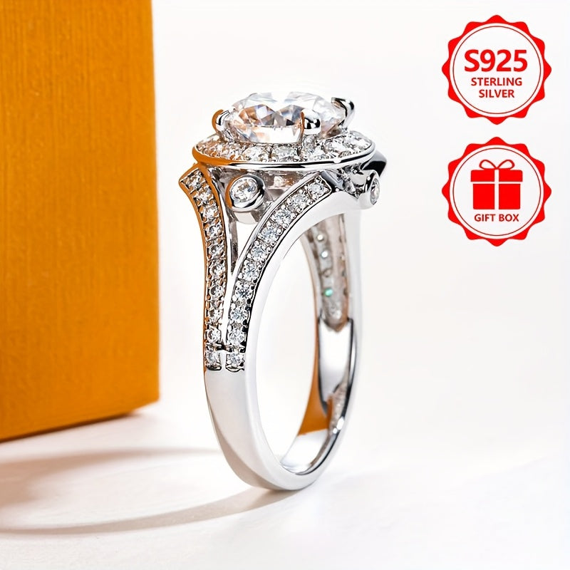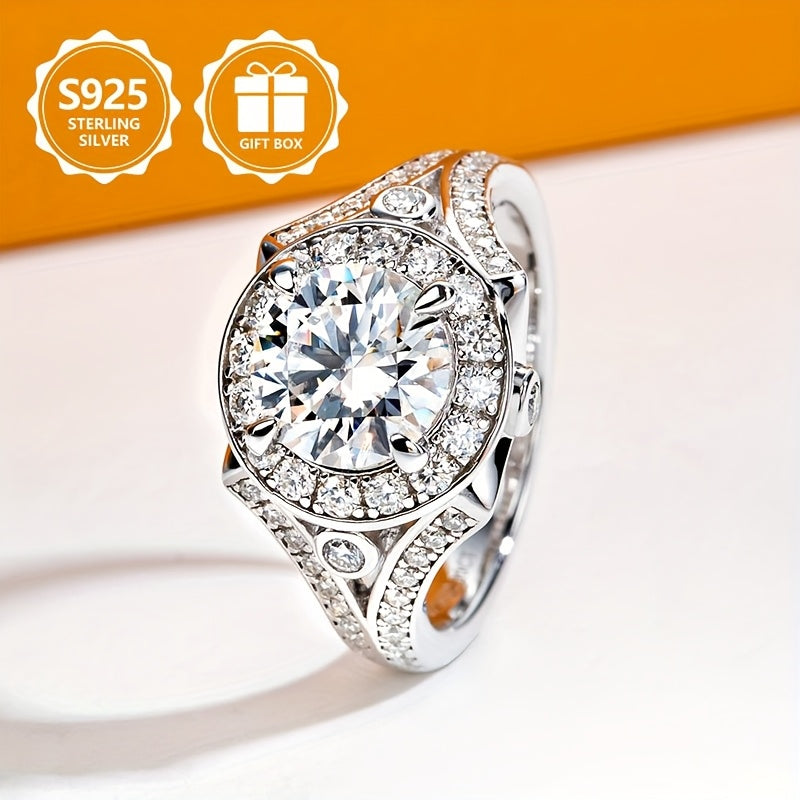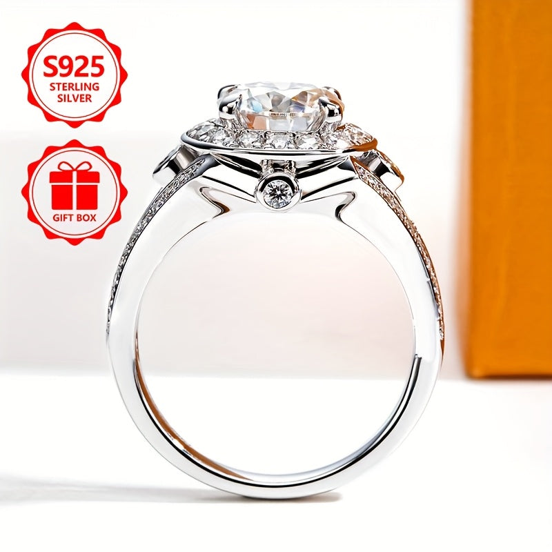 This exquisite 925 sterling silver ring features a full bracket setting, making it a perfect gift for mothers or loved ones.
