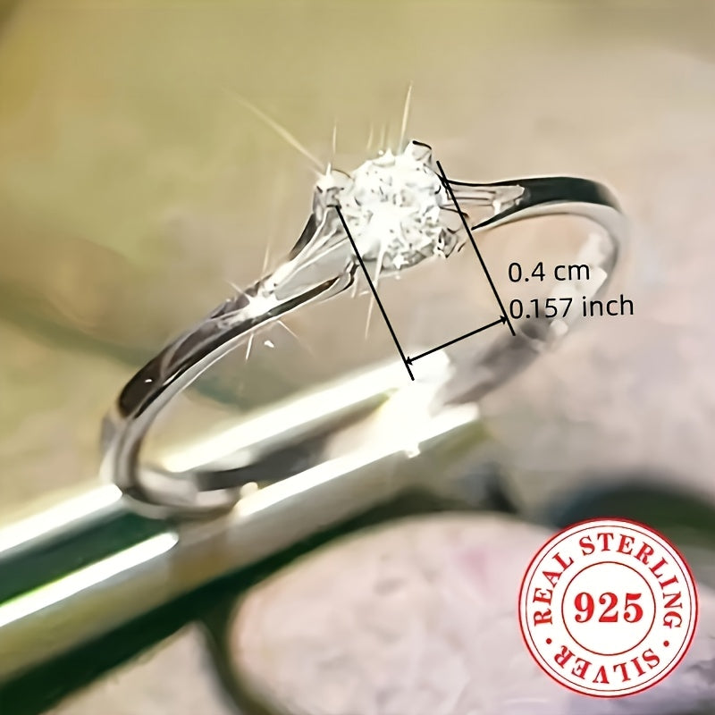 This stunning women's engagement ring features a single synthetic zirconia stone set in 925 sterling silver. Perfect for proposals and weddings, this ring makes a beautiful and meaningful gift for your loved one.