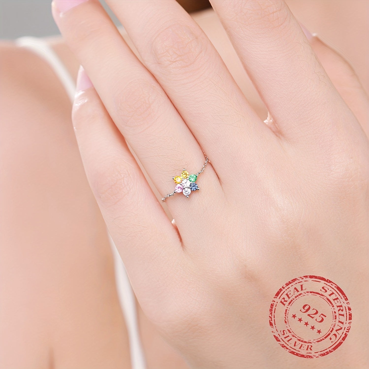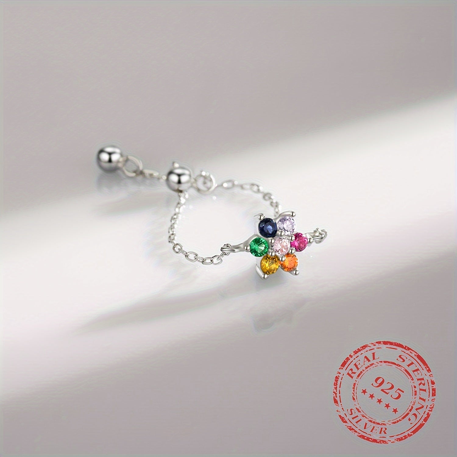 This adjustable ring features a beautiful zirconia flower that adds a touch of sparkle to your look. Perfect for everyday wear and parties, this lightweight ring weighs only 0.8g.