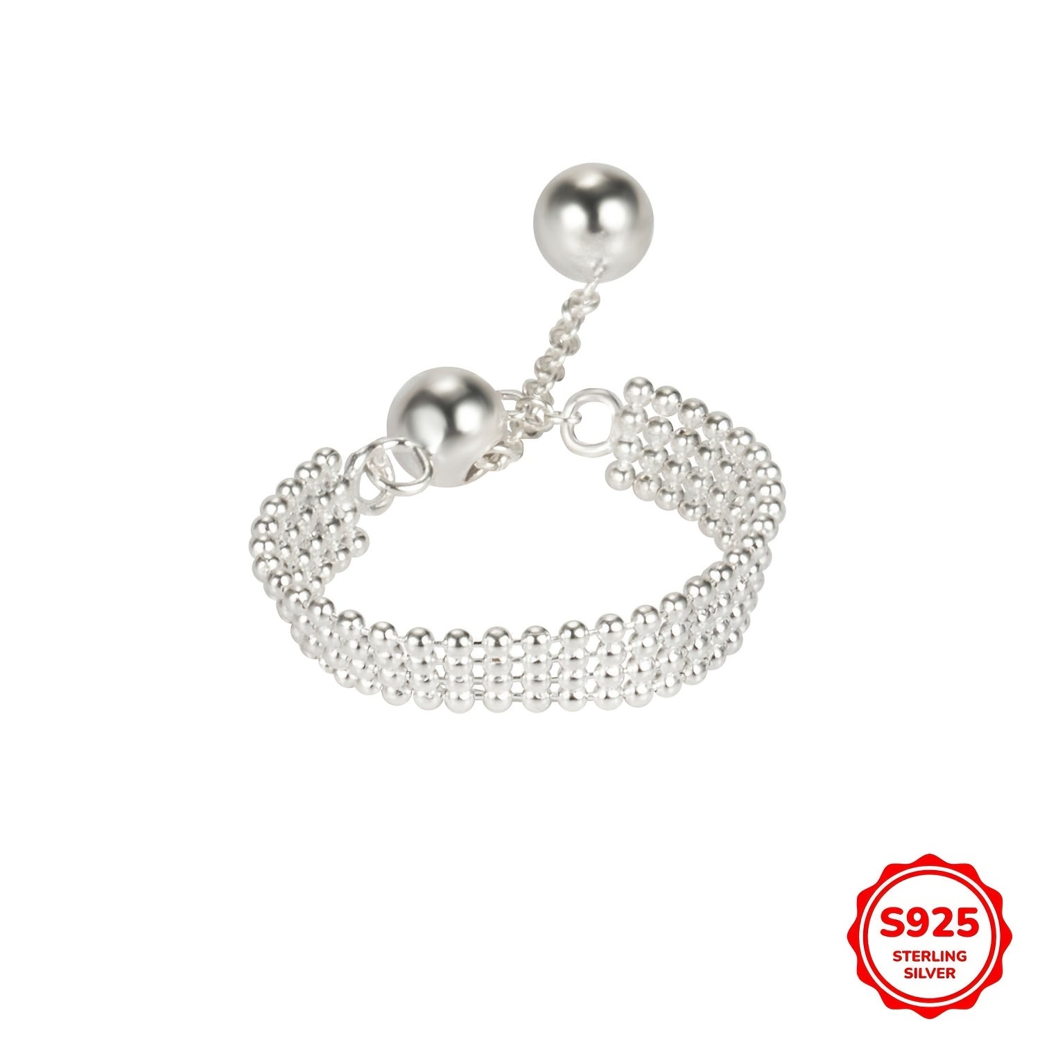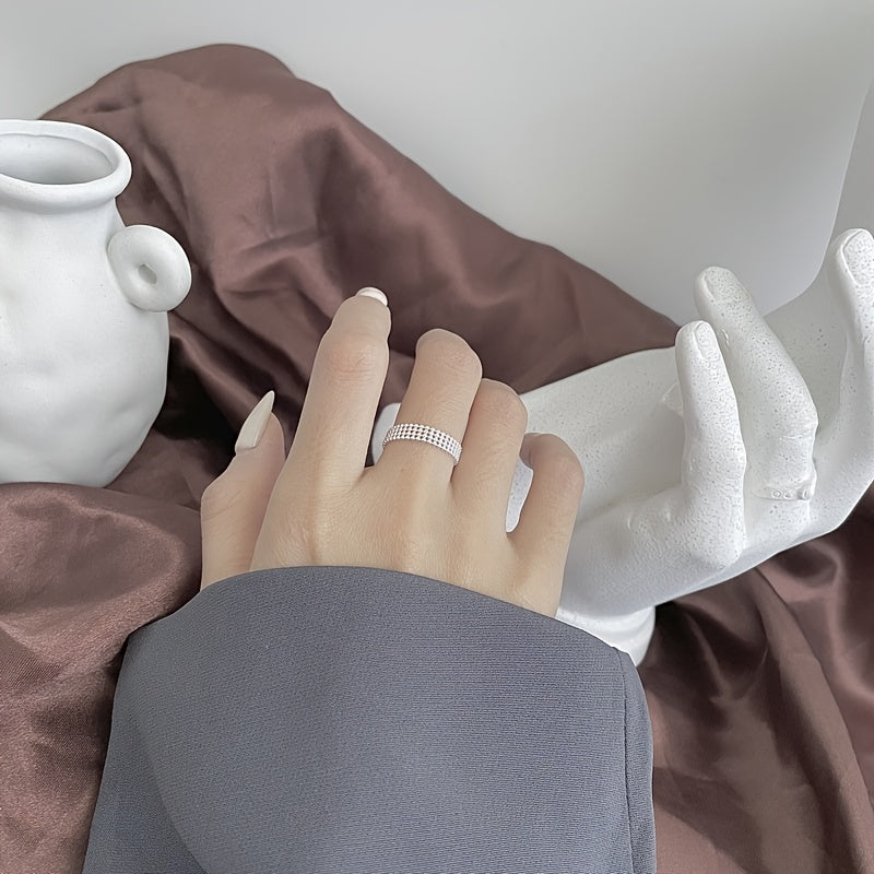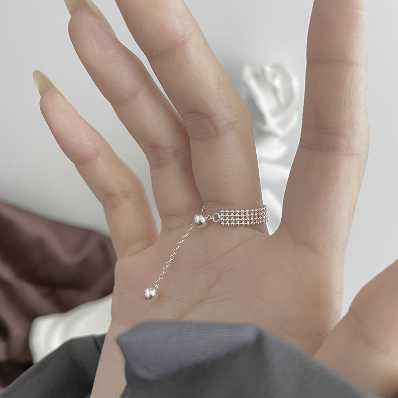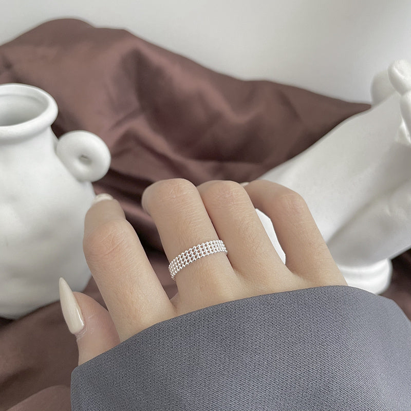 Elegant and adjustable ring made of S925 sterling silver with three layers of light beads. Perfect for everyday wear.