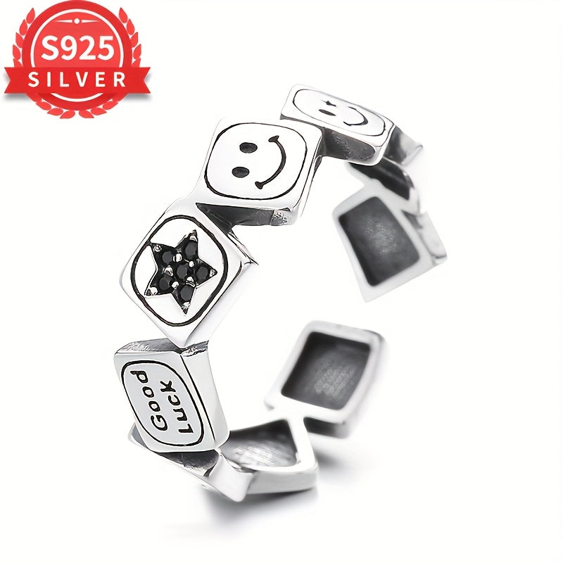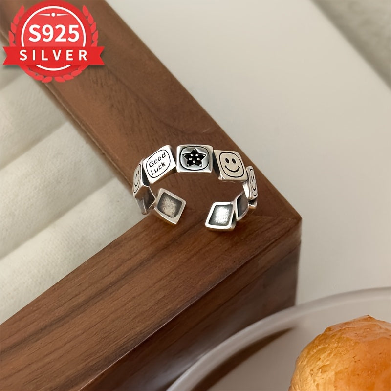 Boho 18K Gold Plated 925 Silver Square Ring Adjustable Open Band