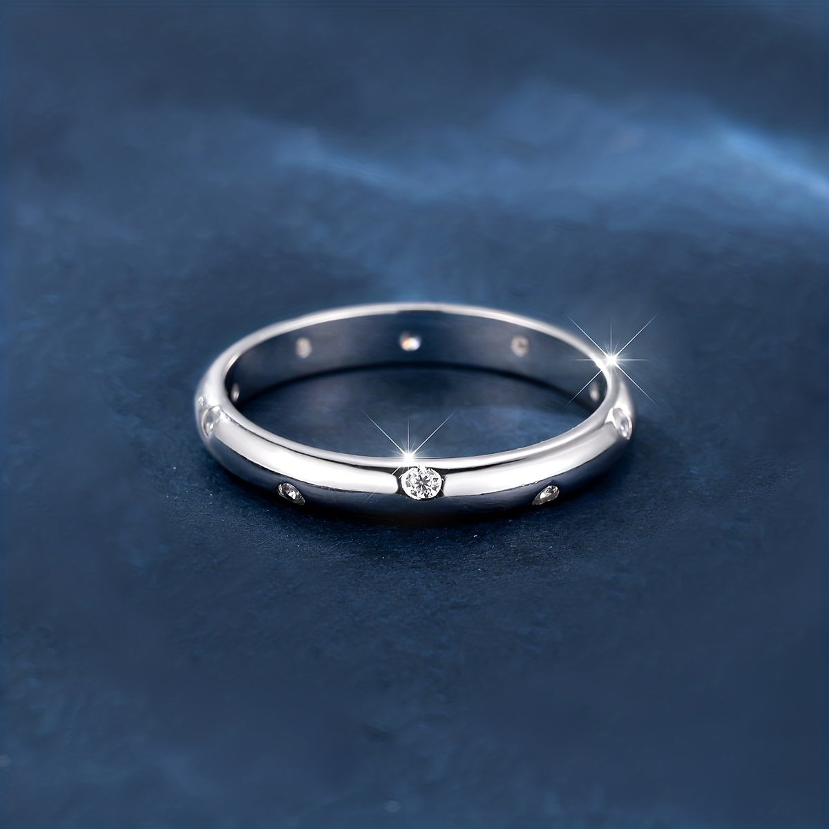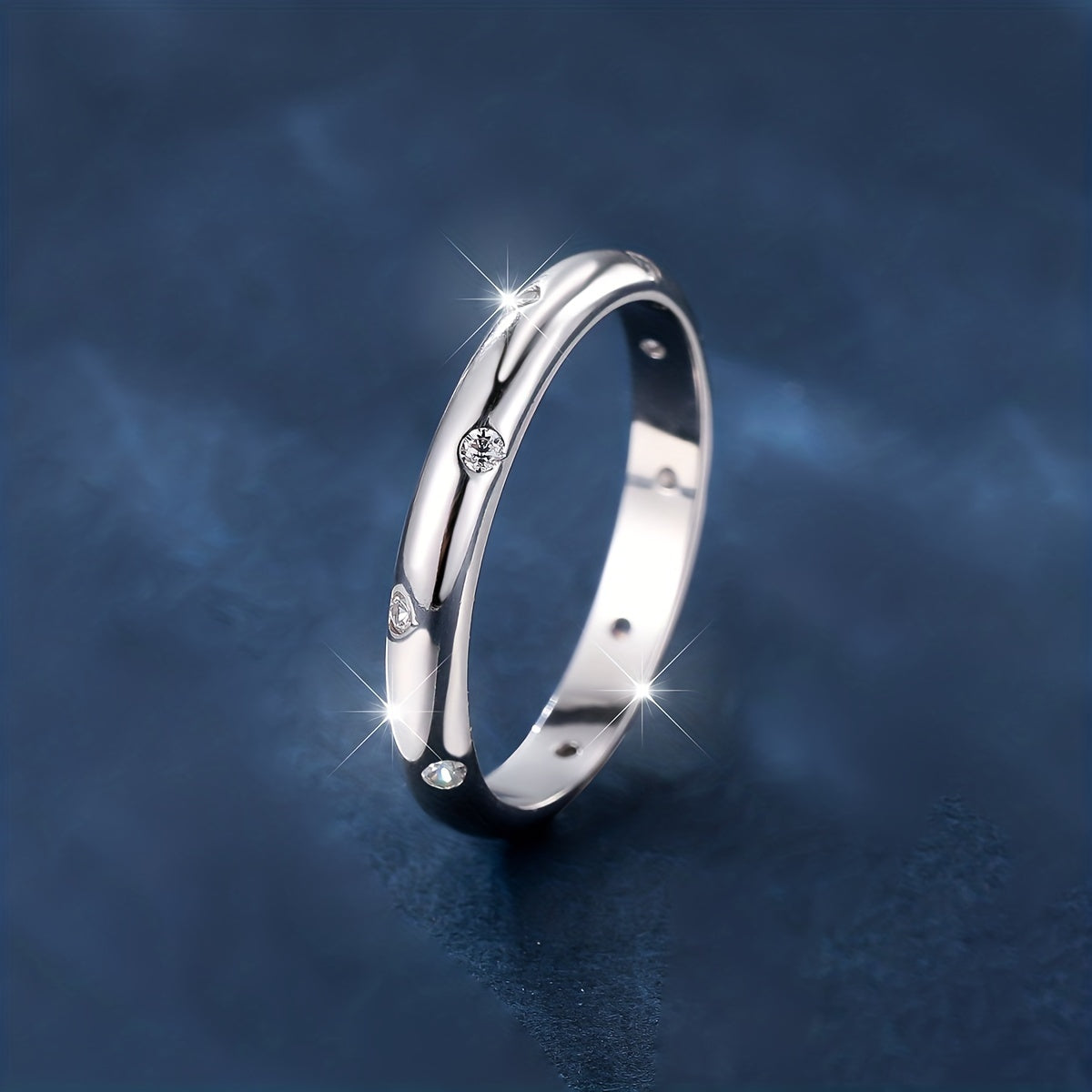 This classic wedding ring features a smooth face and is made of sterling silver with synthetic zirconia. Perfect for special occasions or everyday wear.