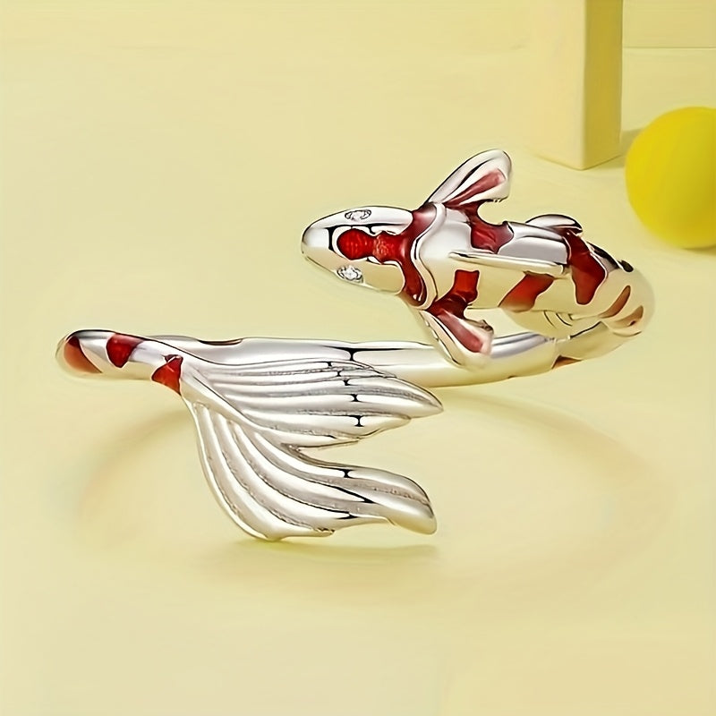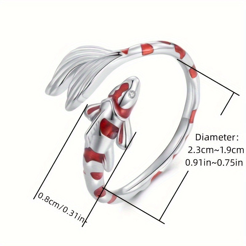 Express your unique personality with this creative red enamel koi ring. Perfect for daily wear or vacation outings, this adjustable ring makes a thoughtful birthday gift for girls.