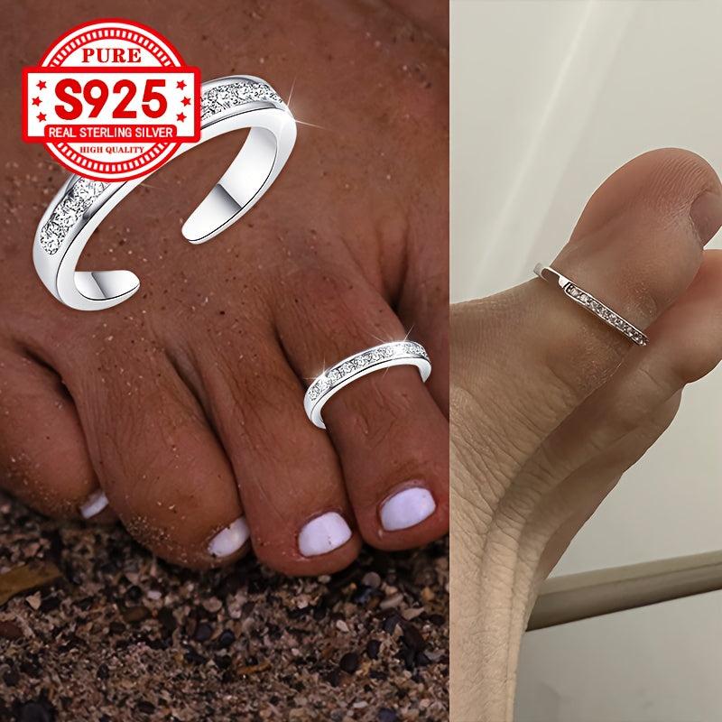 This set includes an open toe ring with solid cubic zirconia in S925 silver, perfect for wearing on your toes or as a hand tail ring. Low allergenic design suitable for beach trips.