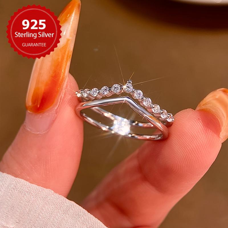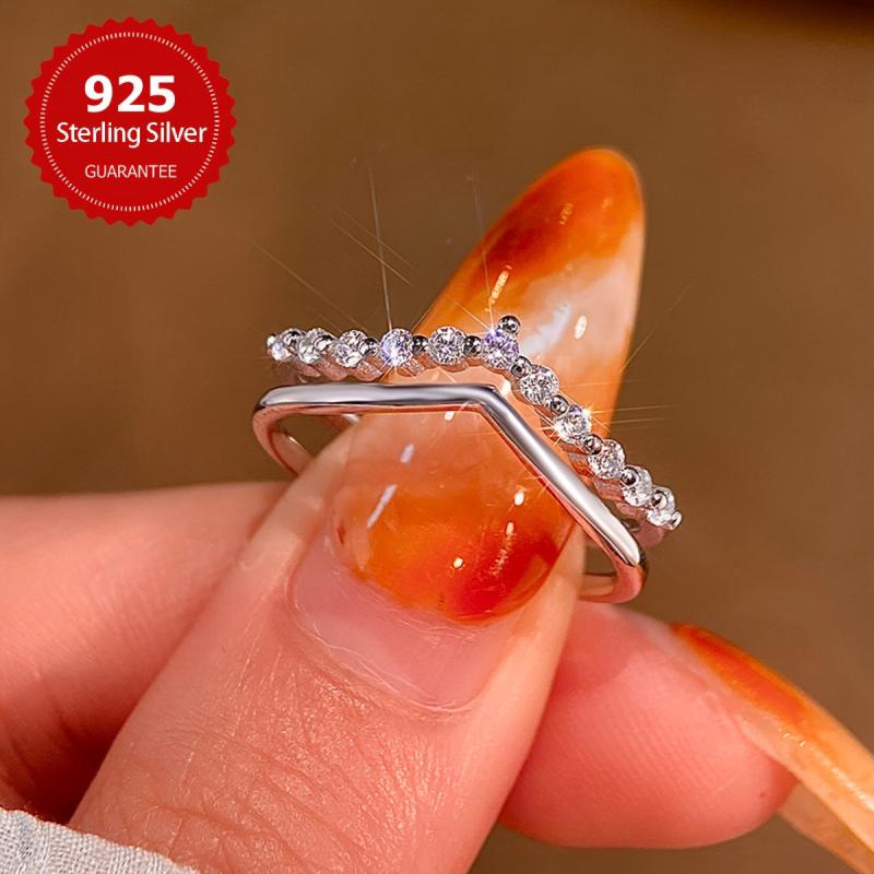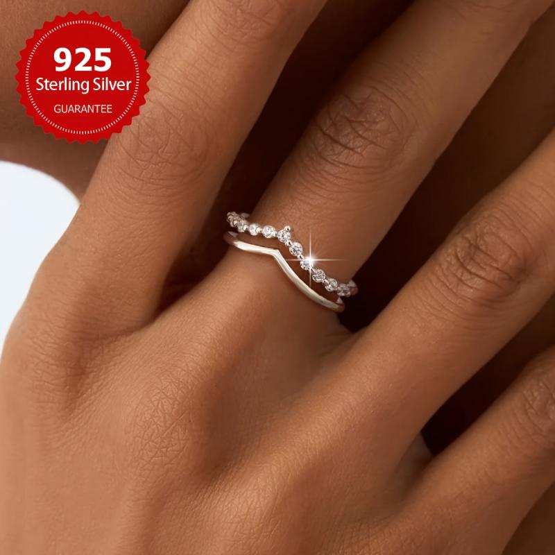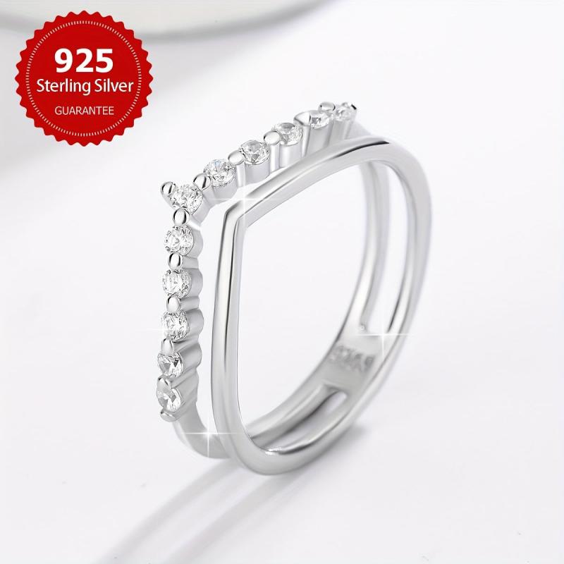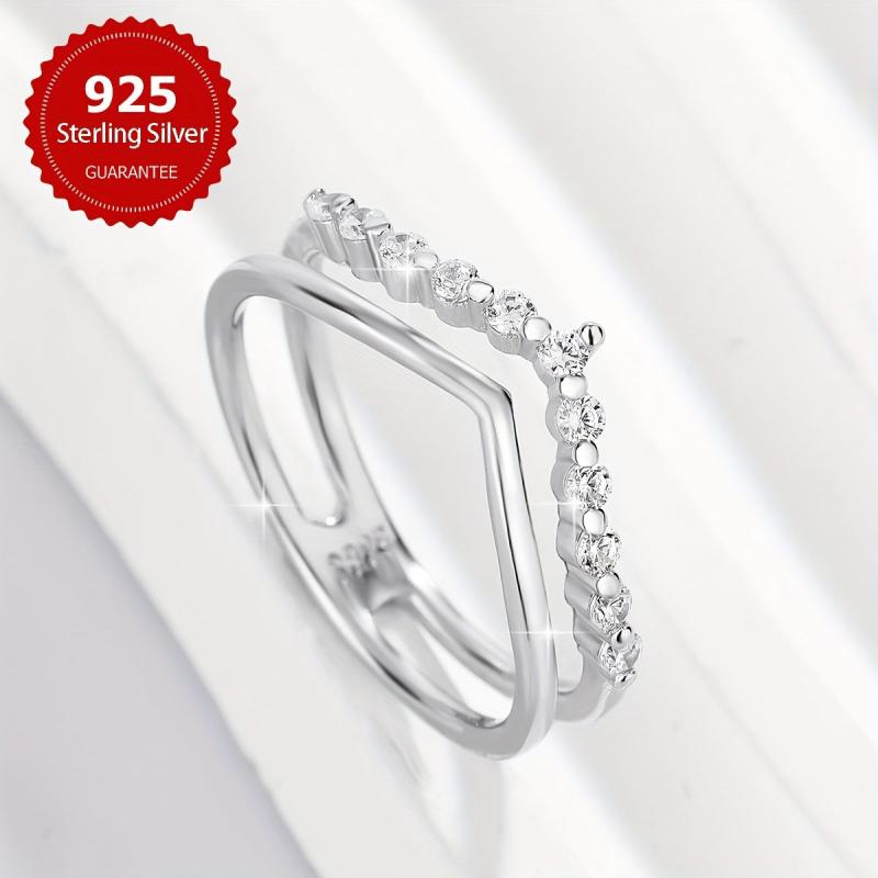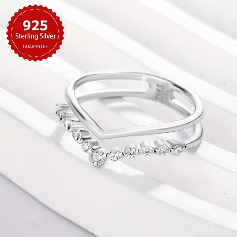 This stunning double layer V shape ring is made of s925 sterling silver, a perfect engagement or wedding ring for women. It can also be a great promise or eternity ring. The unique design makes it a special piece of jewelry that would make an excellent gift for a loved one.