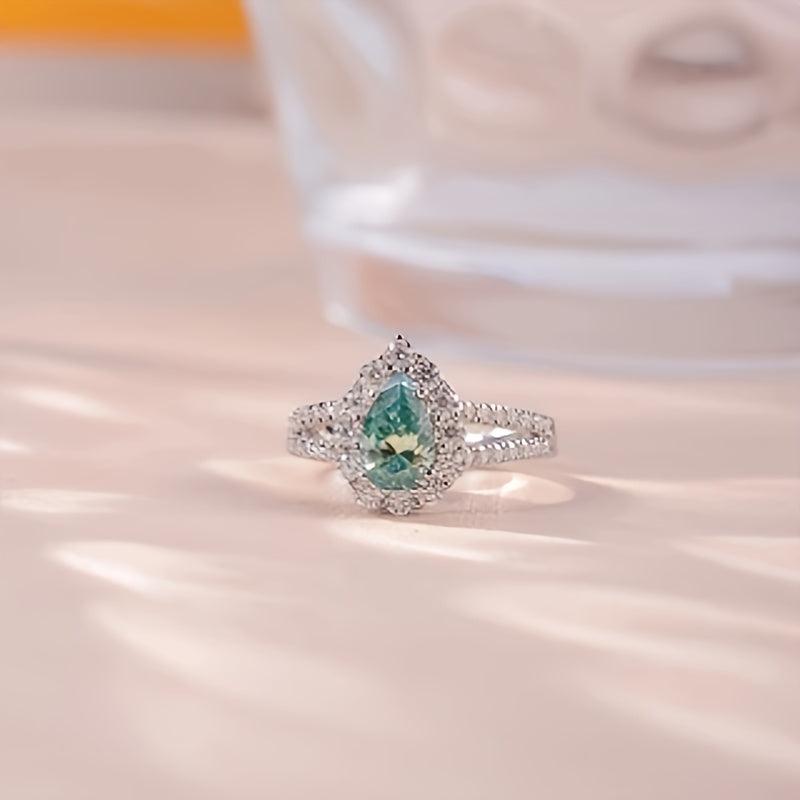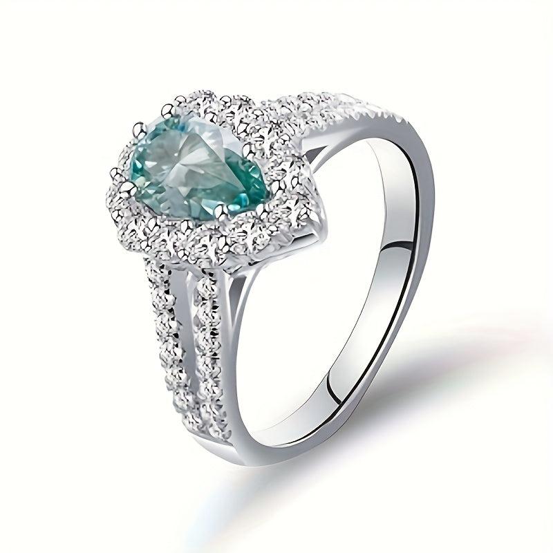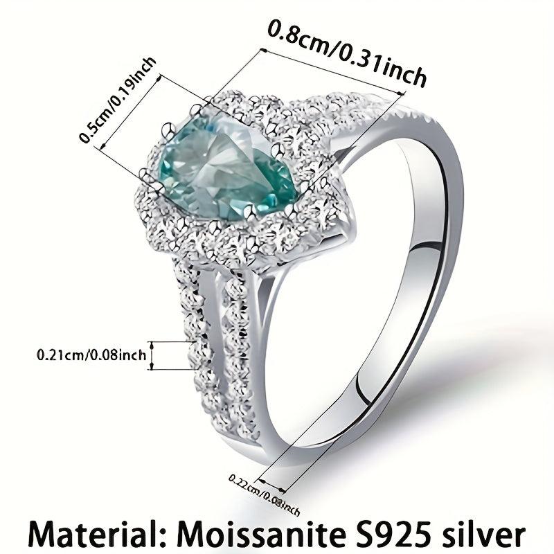 This sterling silver ring features a beautiful droplet shape moissanite inlaid design, making it a perfect choice for wedding or special occasions. The ring is hypoallergenic and delicate, suitable for everyday wear.