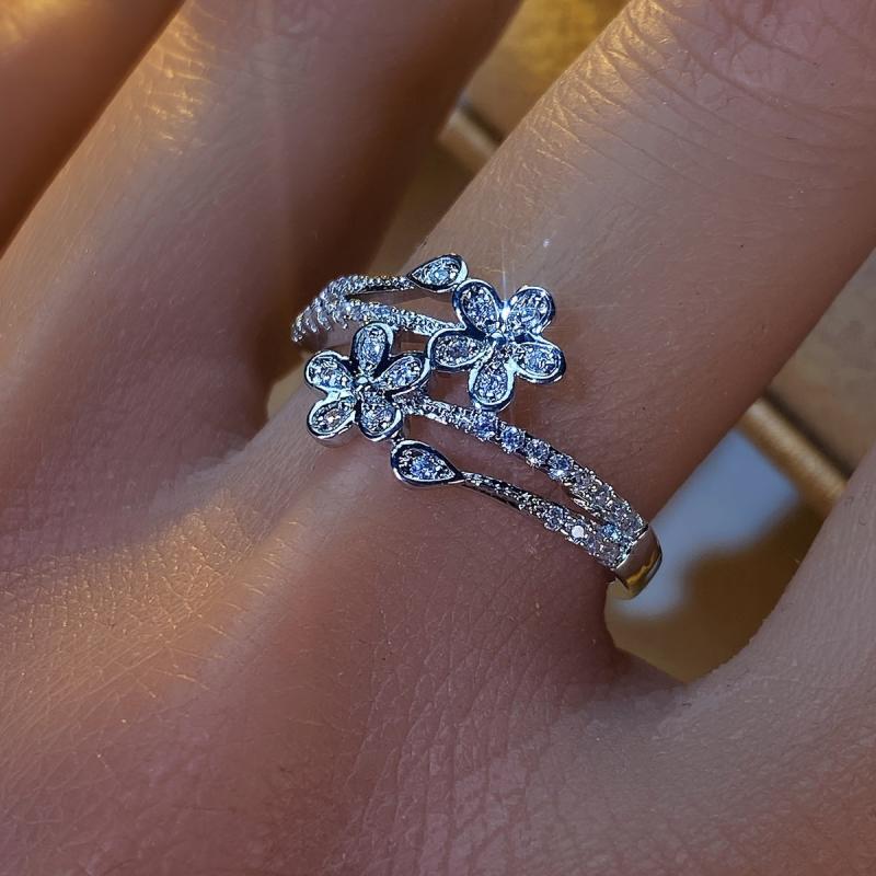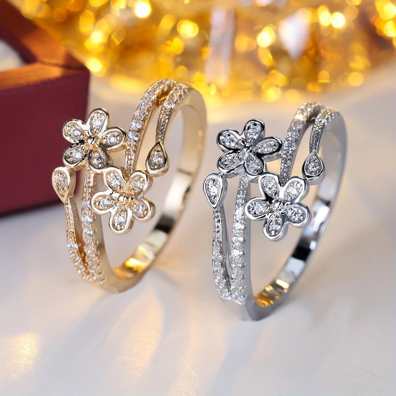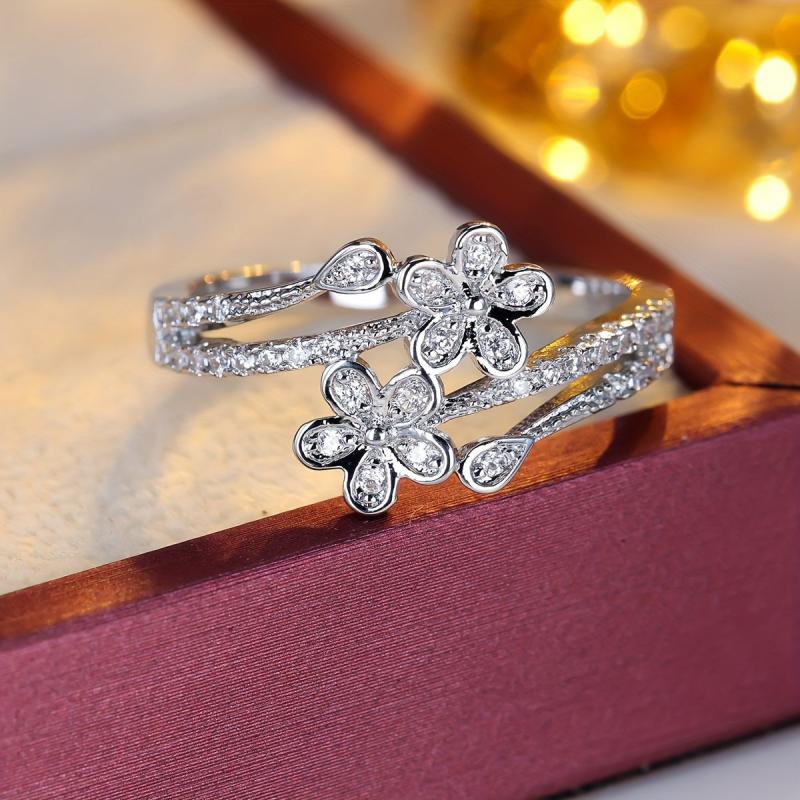 Floral Zirconia Ring Copper Statement Jewelry with Cubic Zirconia