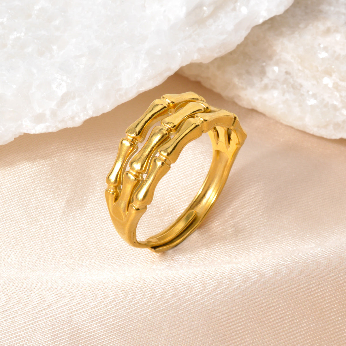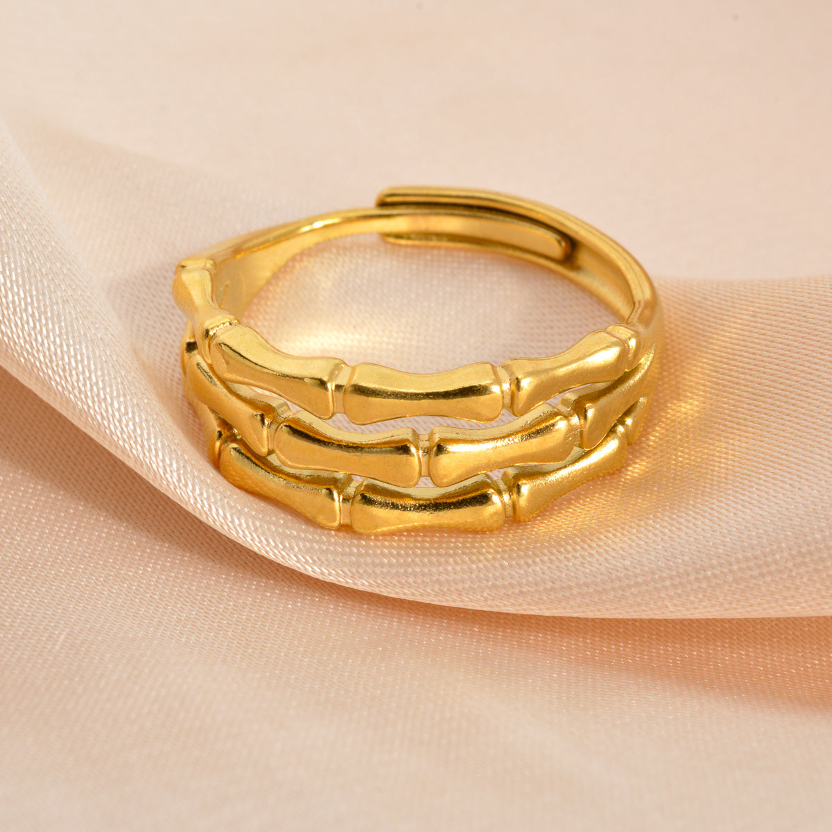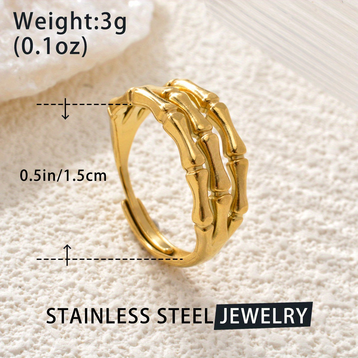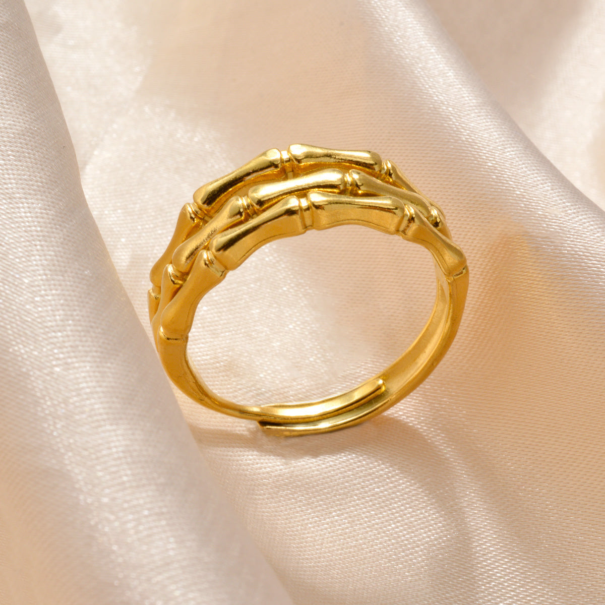 This stylish ring features a golden tone layer bamboo hollow design. Made of high-quality stainless steel, it is perfect for both casual and party wear.