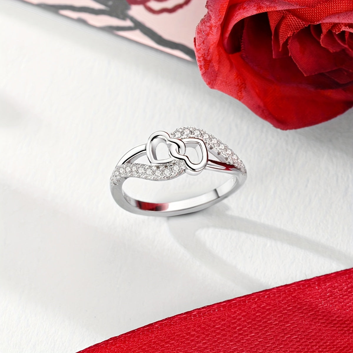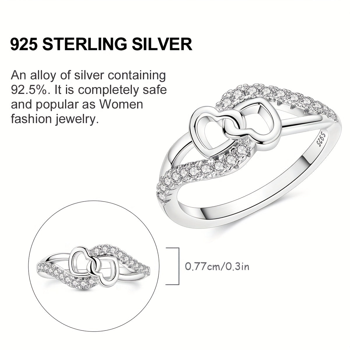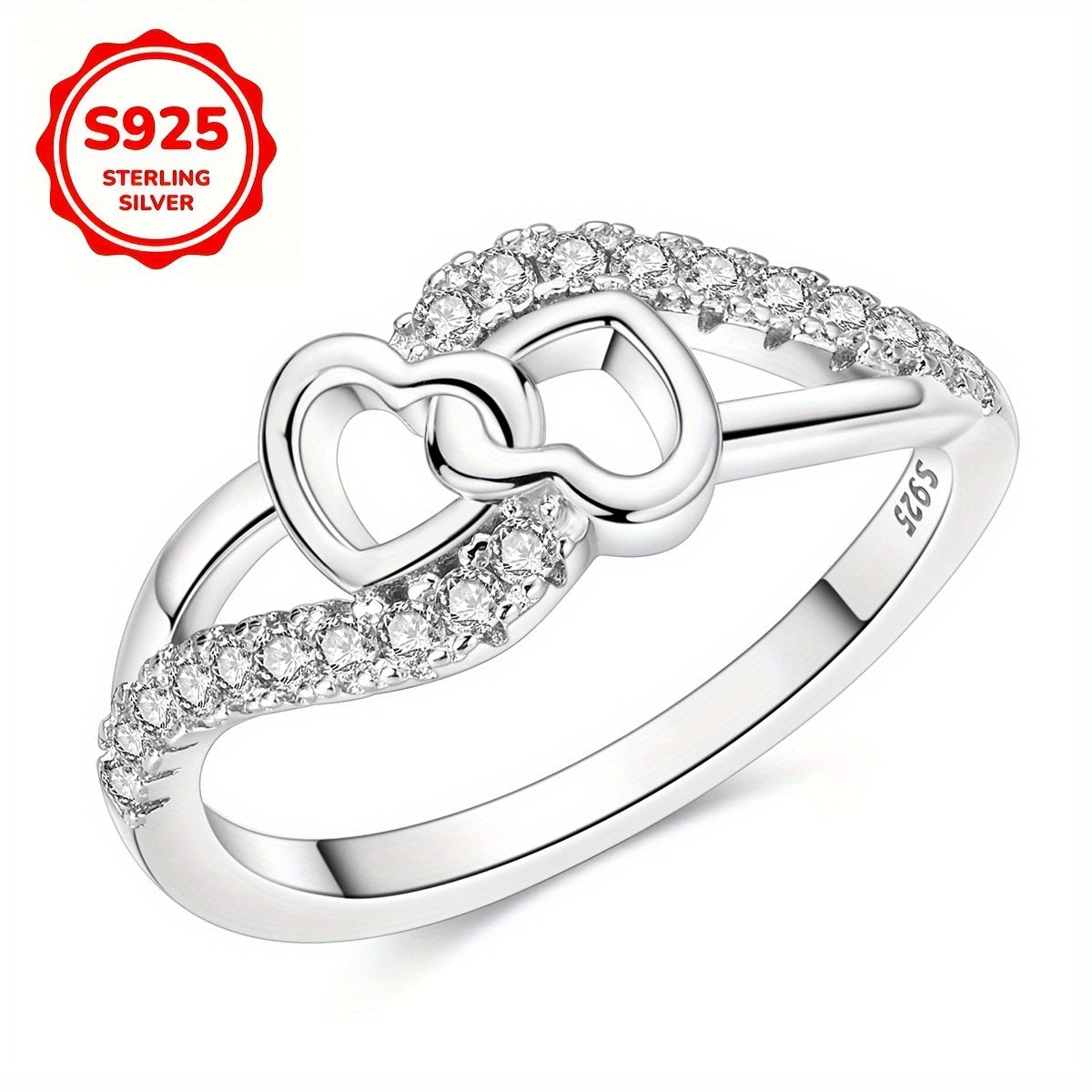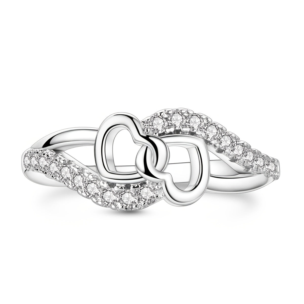 This heart shaped wrap band is made of S925 sterling silver with cubic zirconia beads, perfect for women. Ideal for family anniversary, engagement ring, or Easter gift.