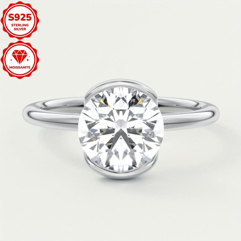 This stunning ring features a high-quality Moissanite stone set in a classic single stone design. Crafted from 925 sterling silver, this ring is perfect for engagements or special occasions.